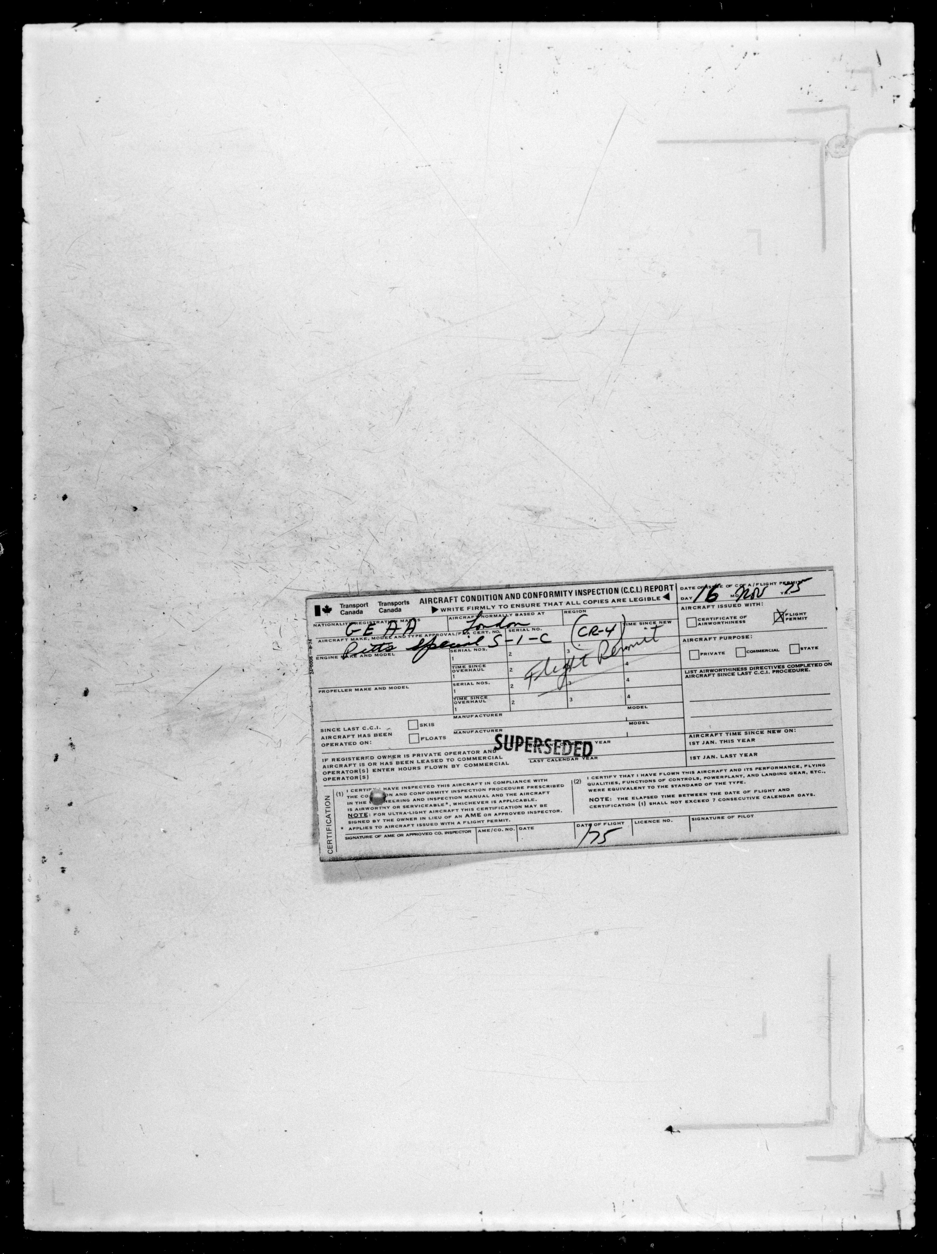 Department of Transport : Civil aircraft registration, inspection and operation files, block 5008, 1920-1986