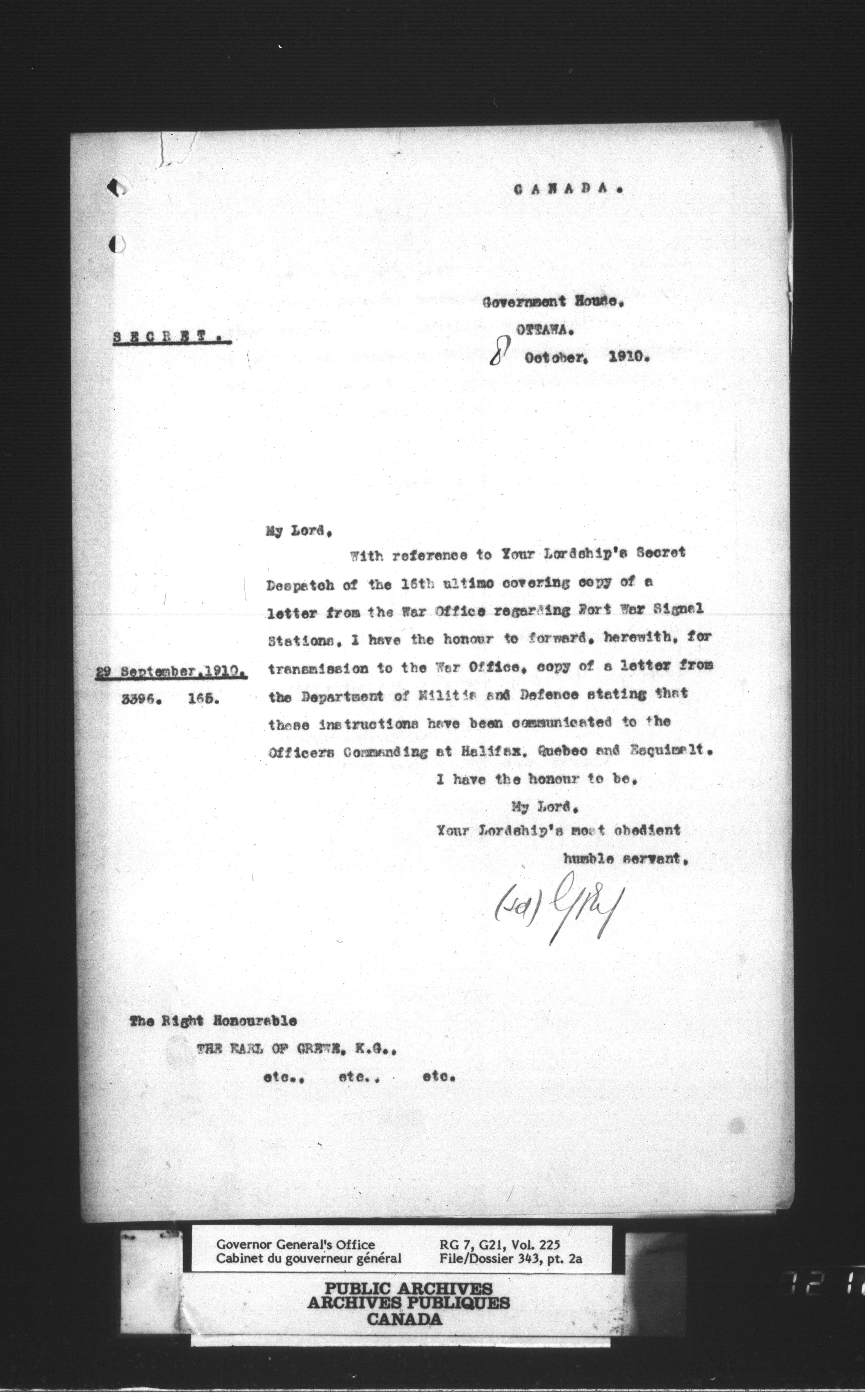 [Governor General] numbered files ; [Gouverneur-générale] dossiers numérotés - T-1180