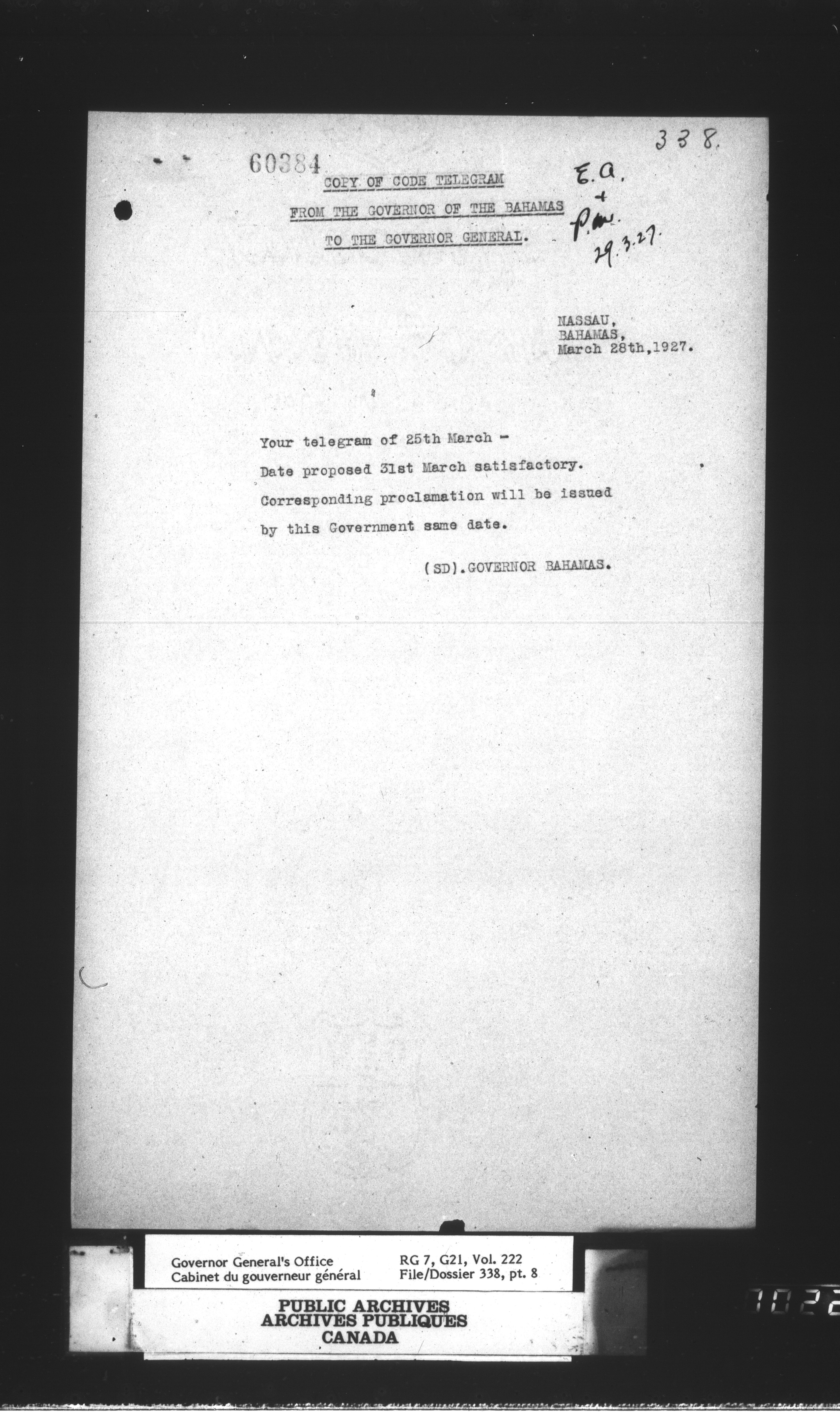 [Governor General] numbered files : T-1180