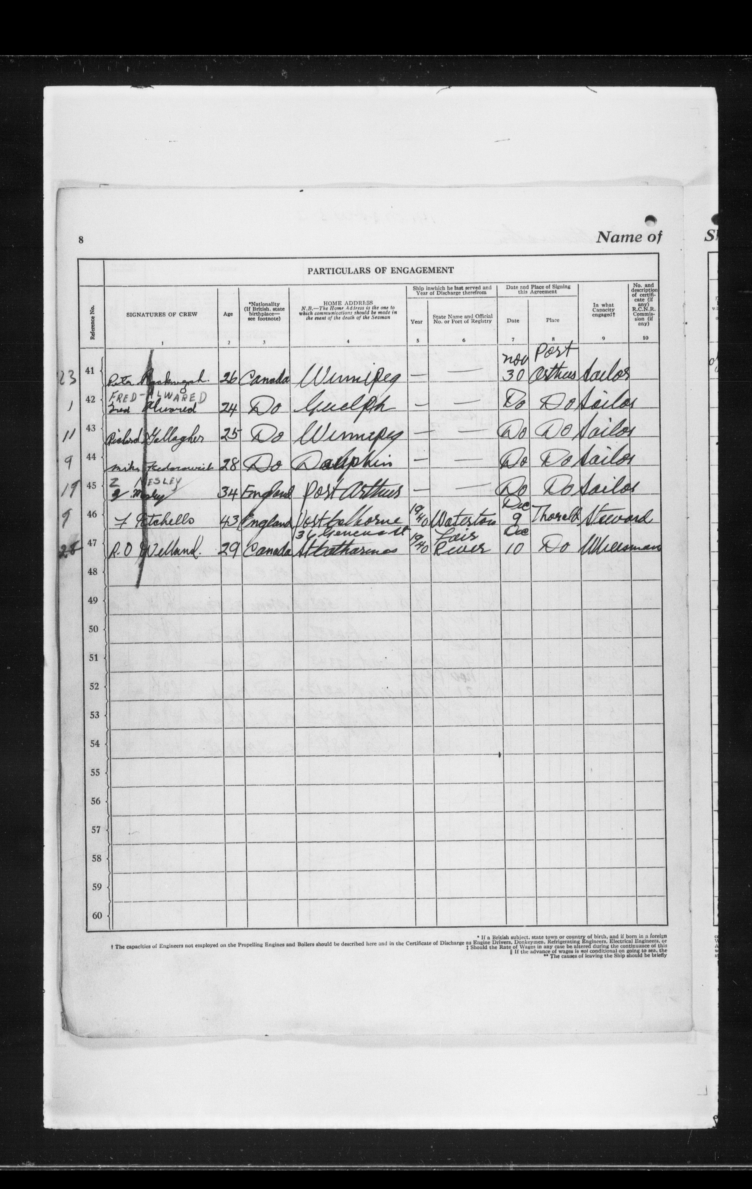 Canadian Marine Transportation Administration, Canadian Coast Guard, Ship Safety Branch, Central Registry of Seamen, Articles of Agreement and Ships' Logs : T-11807
