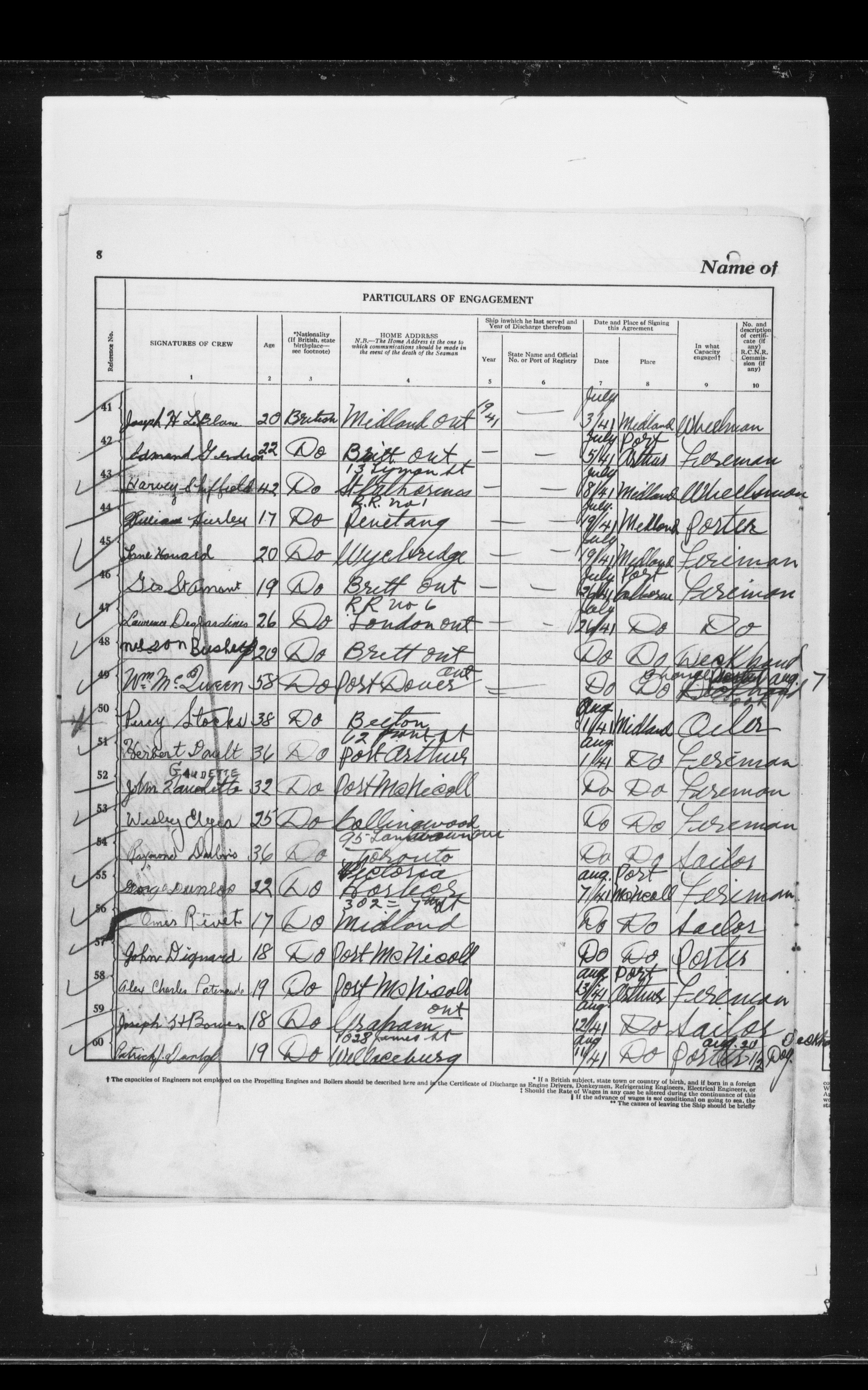 Canadian Marine Transportation Administration, Canadian Coast Guard, Ship Safety Branch, Central Registry of Seamen, Articles of Agreement and Ships' Logs : T-11807