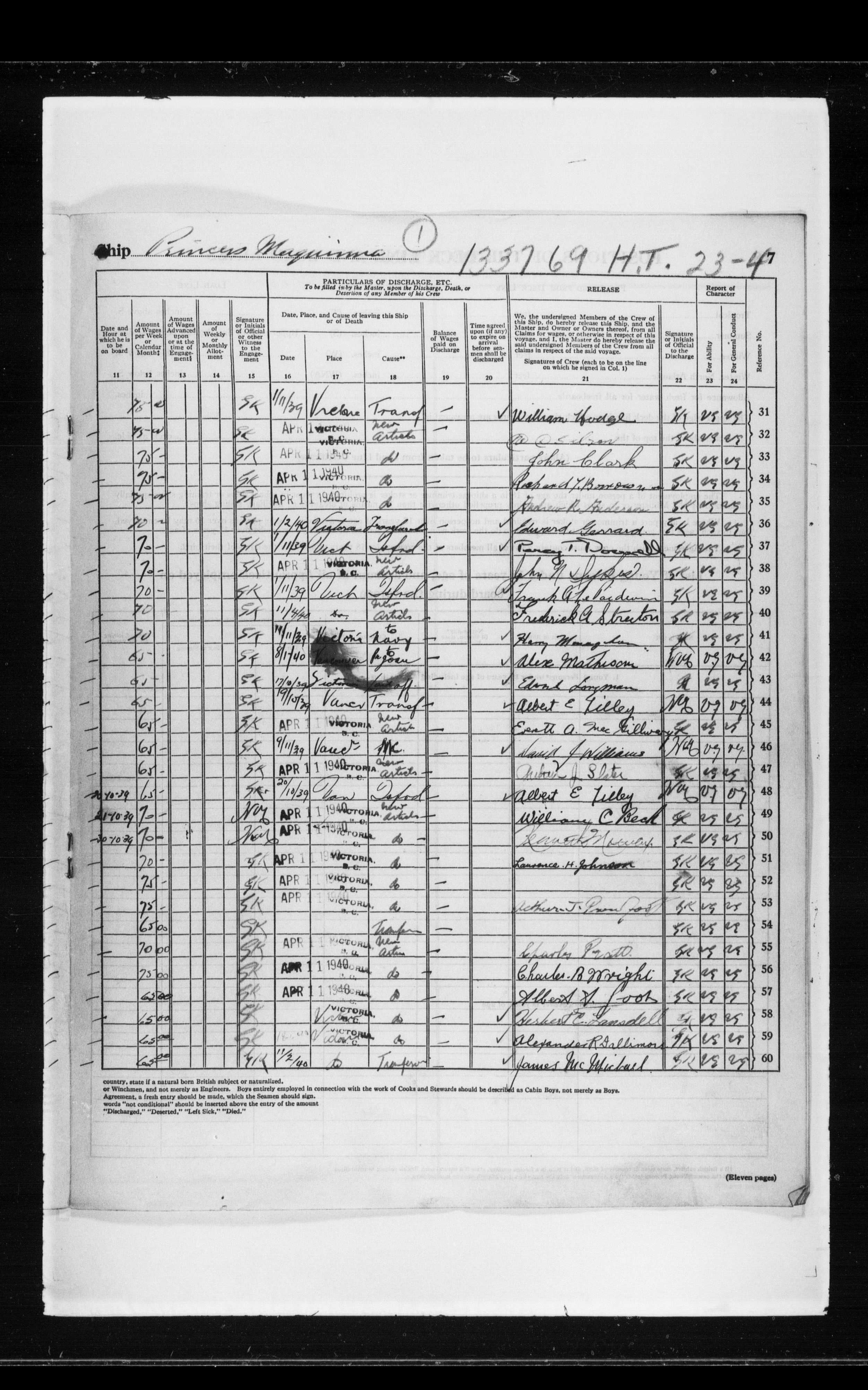 Canadian Marine Transportation Administration, Canadian Coast Guard, Ship Safety Branch, Central Registry of Seamen, Articles of Agreement and Ships' Logs - 11808