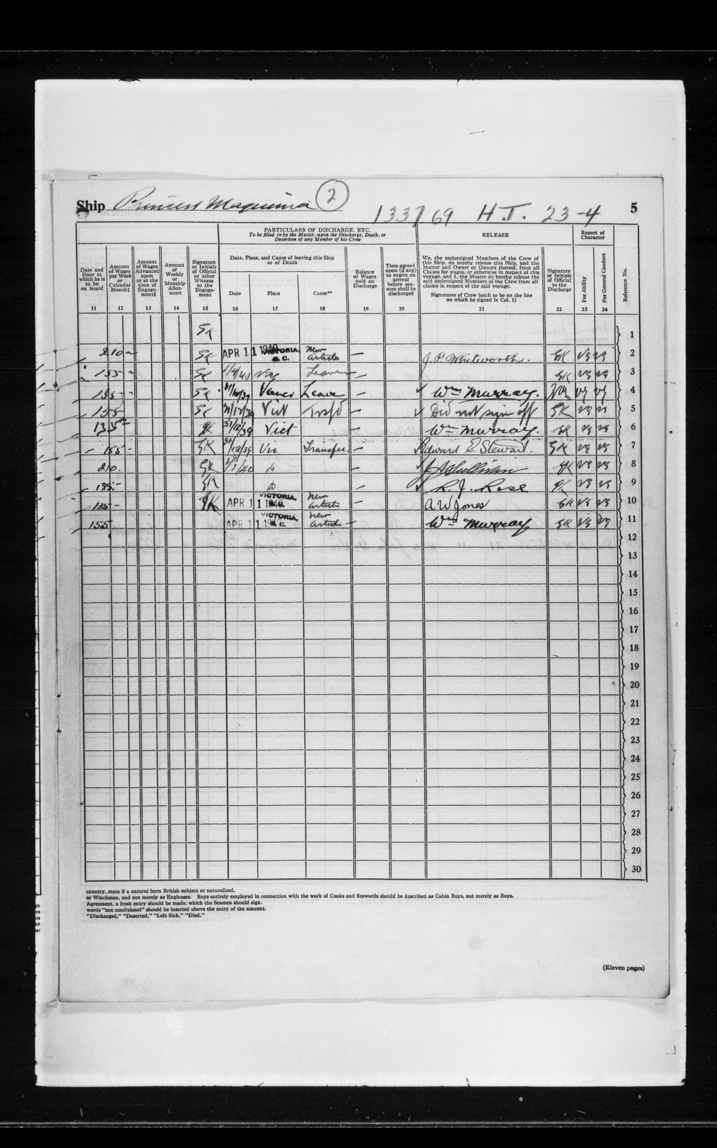 Canadian Marine Transportation Administration, Canadian Coast Guard, Ship Safety Branch, Central Registry of Seamen, Articles of Agreement and Ships' Logs - 11808