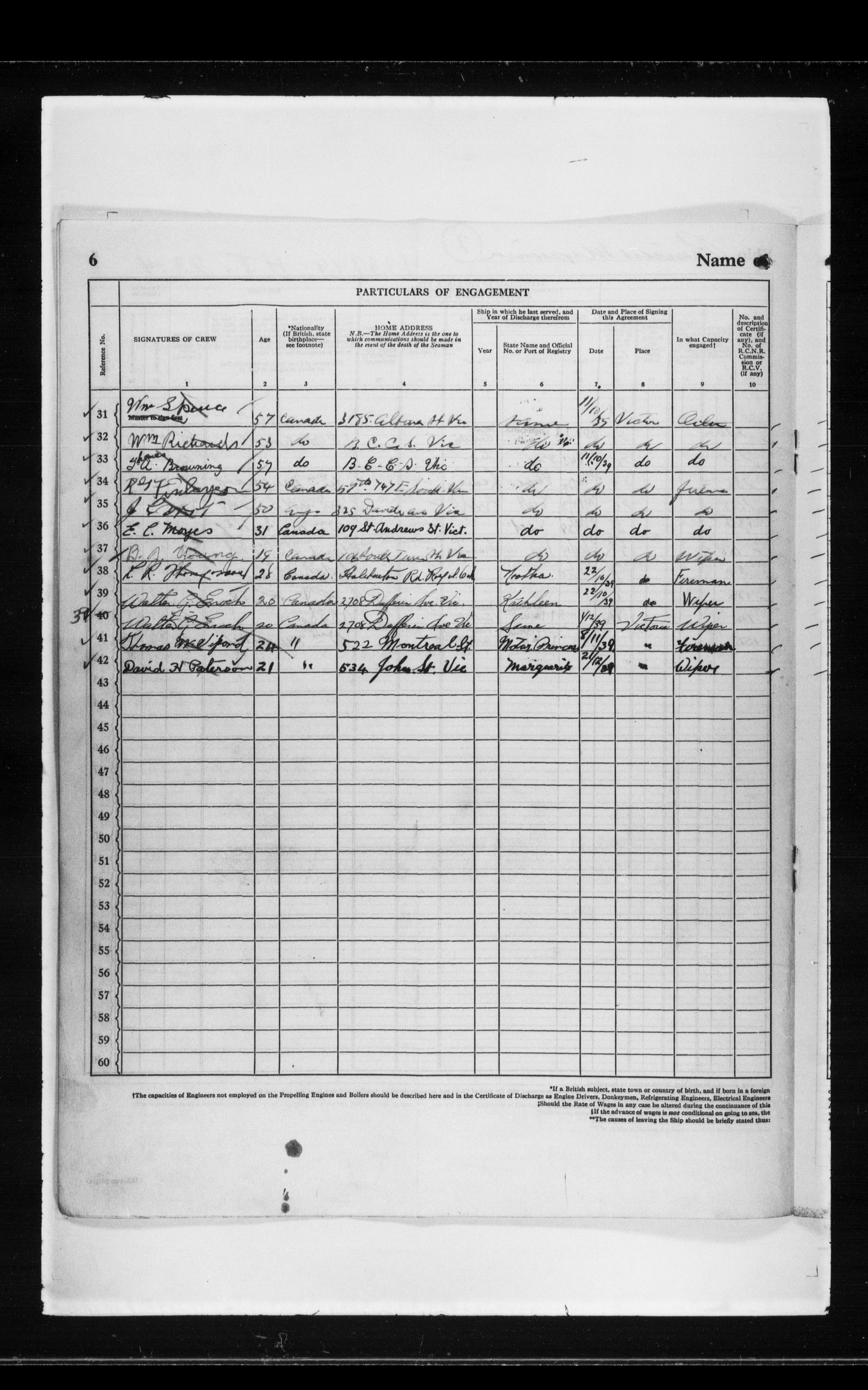 Canadian Marine Transportation Administration, Canadian Coast Guard, Ship Safety Branch, Central Registry of Seamen, Articles of Agreement and Ships' Logs - 11808