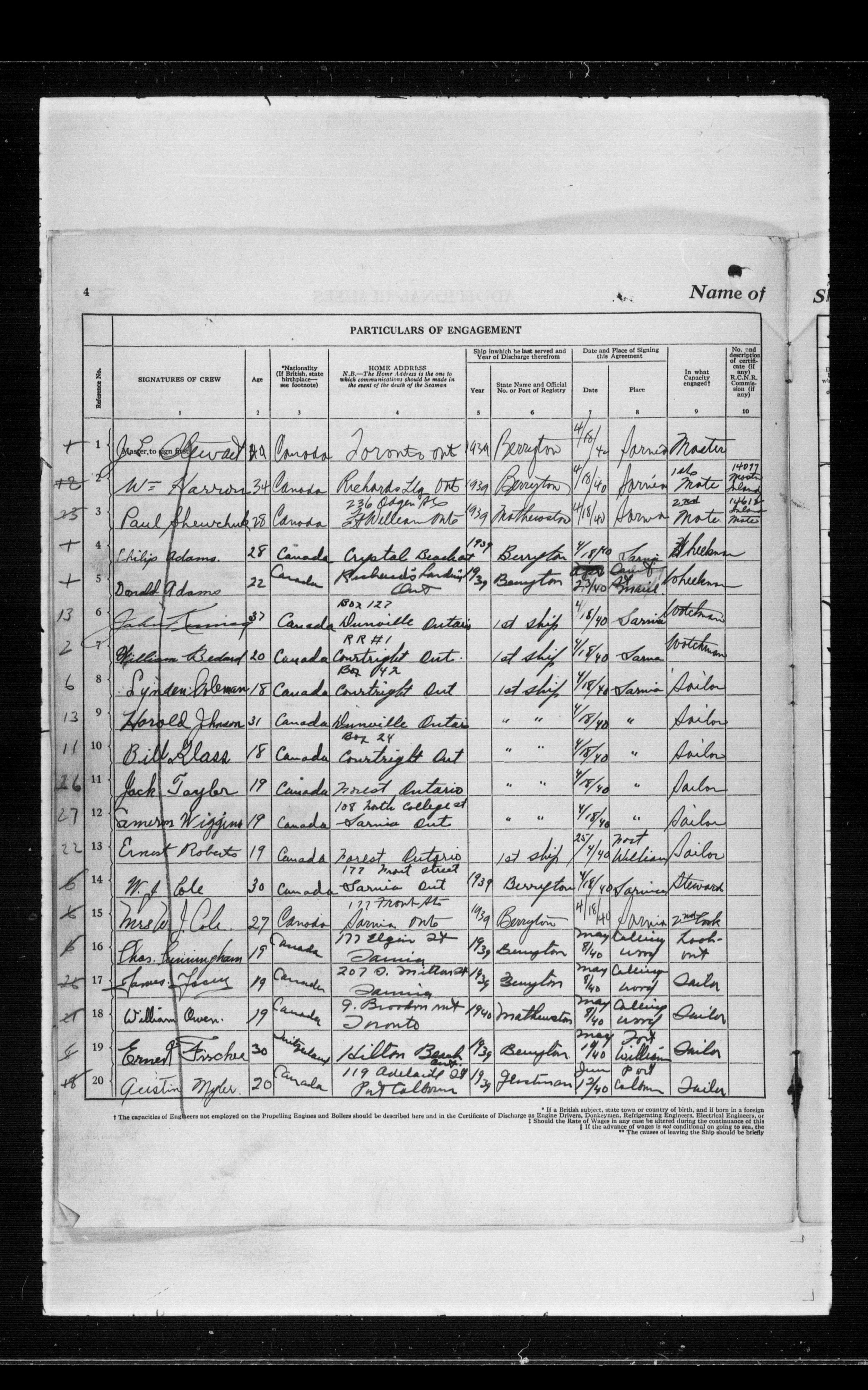 Canadian Marine Transportation Administration, Canadian Coast Guard, Ship Safety Branch, Central Registry of Seamen, Articles of Agreement and Ships' Logs - 11811