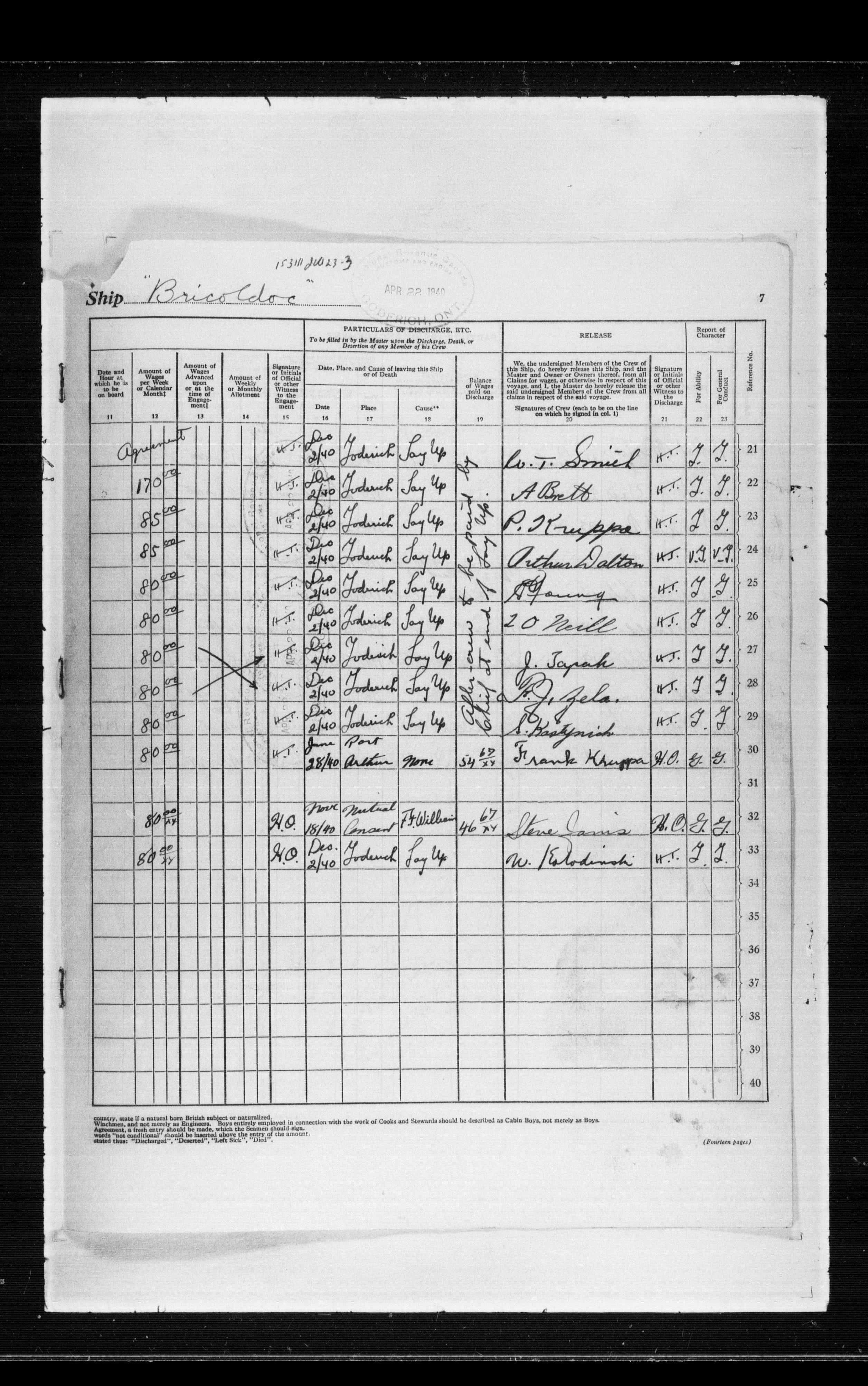 Canadian Marine Transportation Administration, Canadian Coast Guard, Ship Safety Branch, Central Registry of Seamen, Articles of Agreement and Ships' Logs - 11813