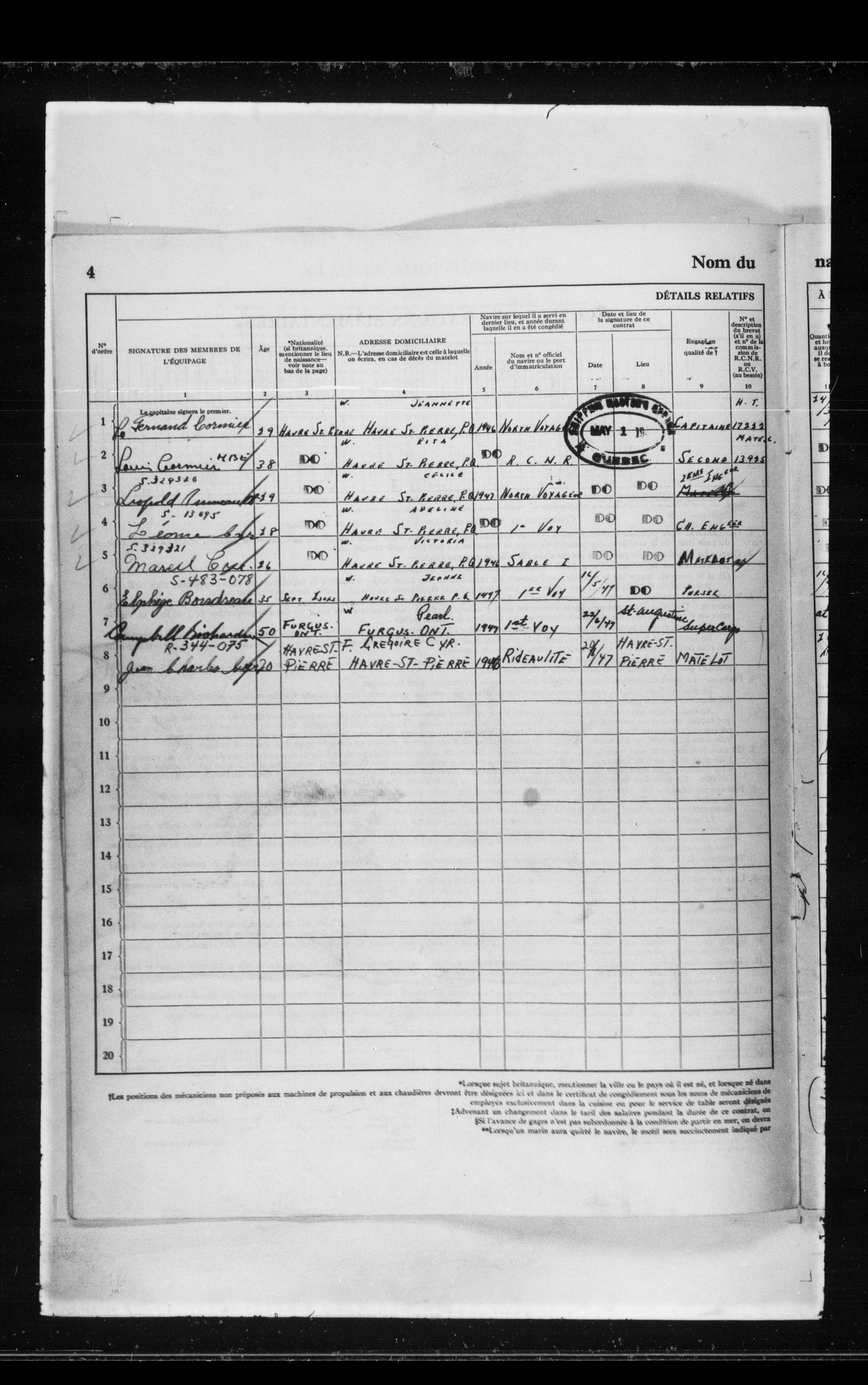 Canadian Marine Transportation Administration, Canadian Coast Guard, Ship Safety Branch, Central Registry of Seamen, Articles of Agreement and Ships' Logs - 11815