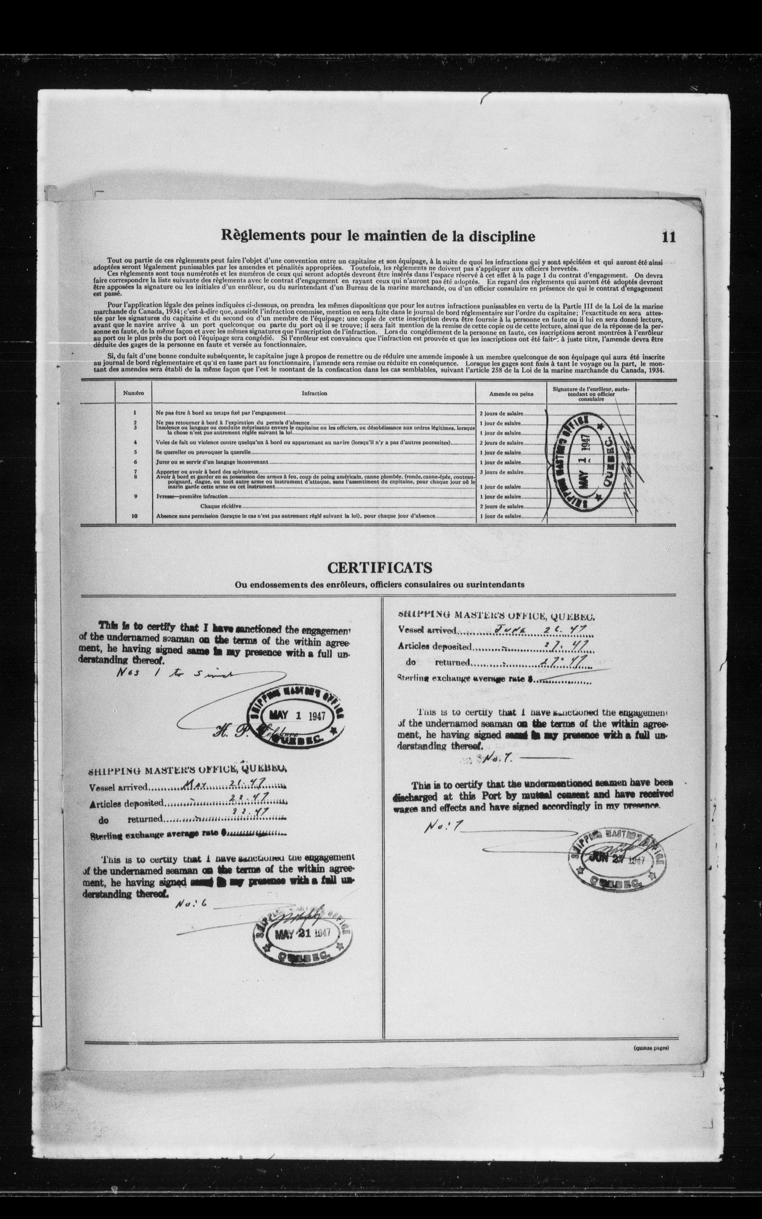 Canadian Marine Transportation Administration, Canadian Coast Guard, Ship Safety Branch, Central Registry of Seamen, Articles of Agreement and Ships' Logs - 11815
