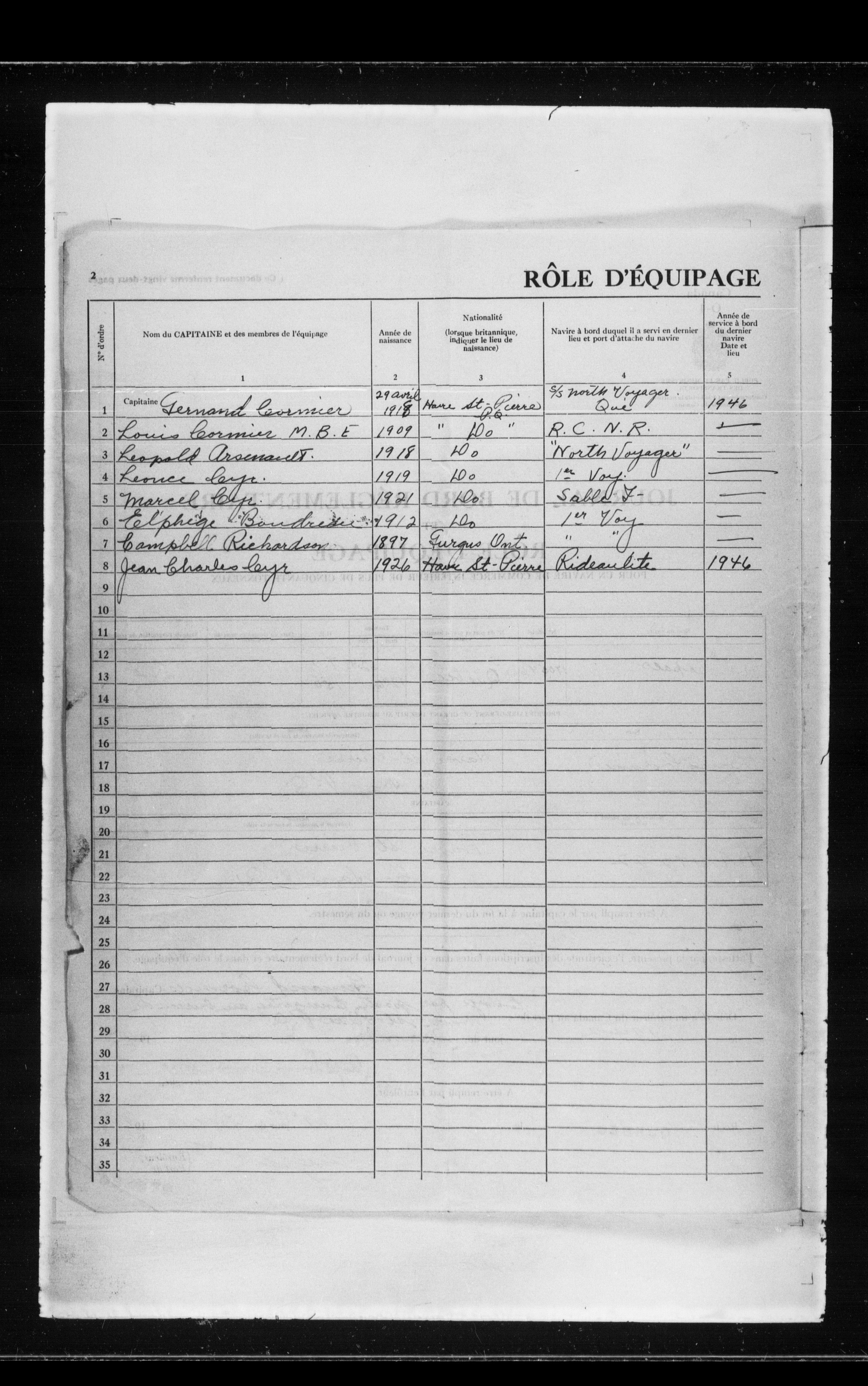 Canadian Marine Transportation Administration, Canadian Coast Guard, Ship Safety Branch, Central Registry of Seamen, Articles of Agreement and Ships' Logs : T-11815