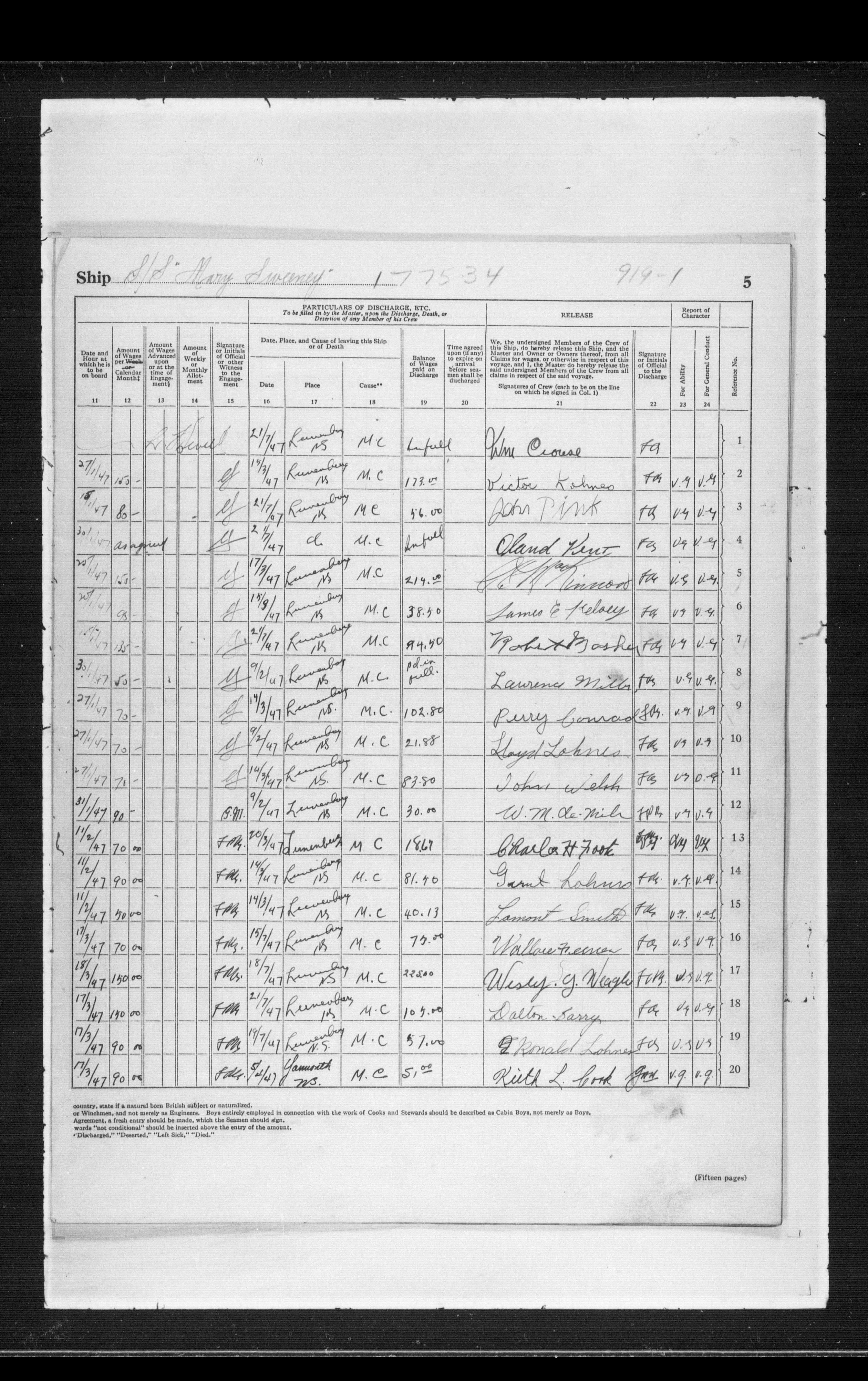 Canadian Marine Transportation Administration, Canadian Coast Guard, Ship Safety Branch, Central Registry of Seamen, Articles of Agreement and Ships' Logs - 11817