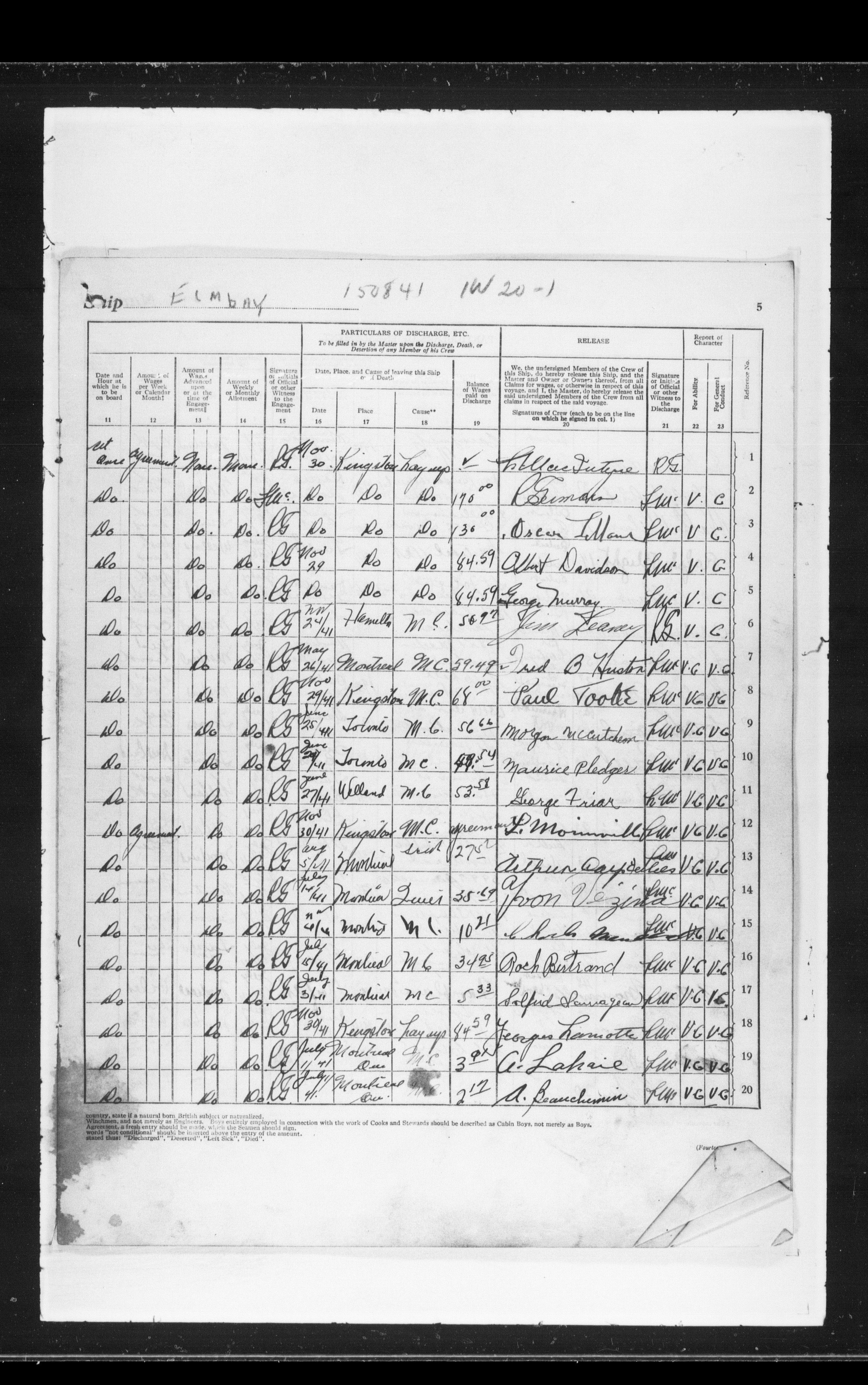 Canadian Marine Transportation Administration, Canadian Coast Guard, Ship Safety Branch, Central Registry of Seamen, Articles of Agreement and Ships' Logs - 11819