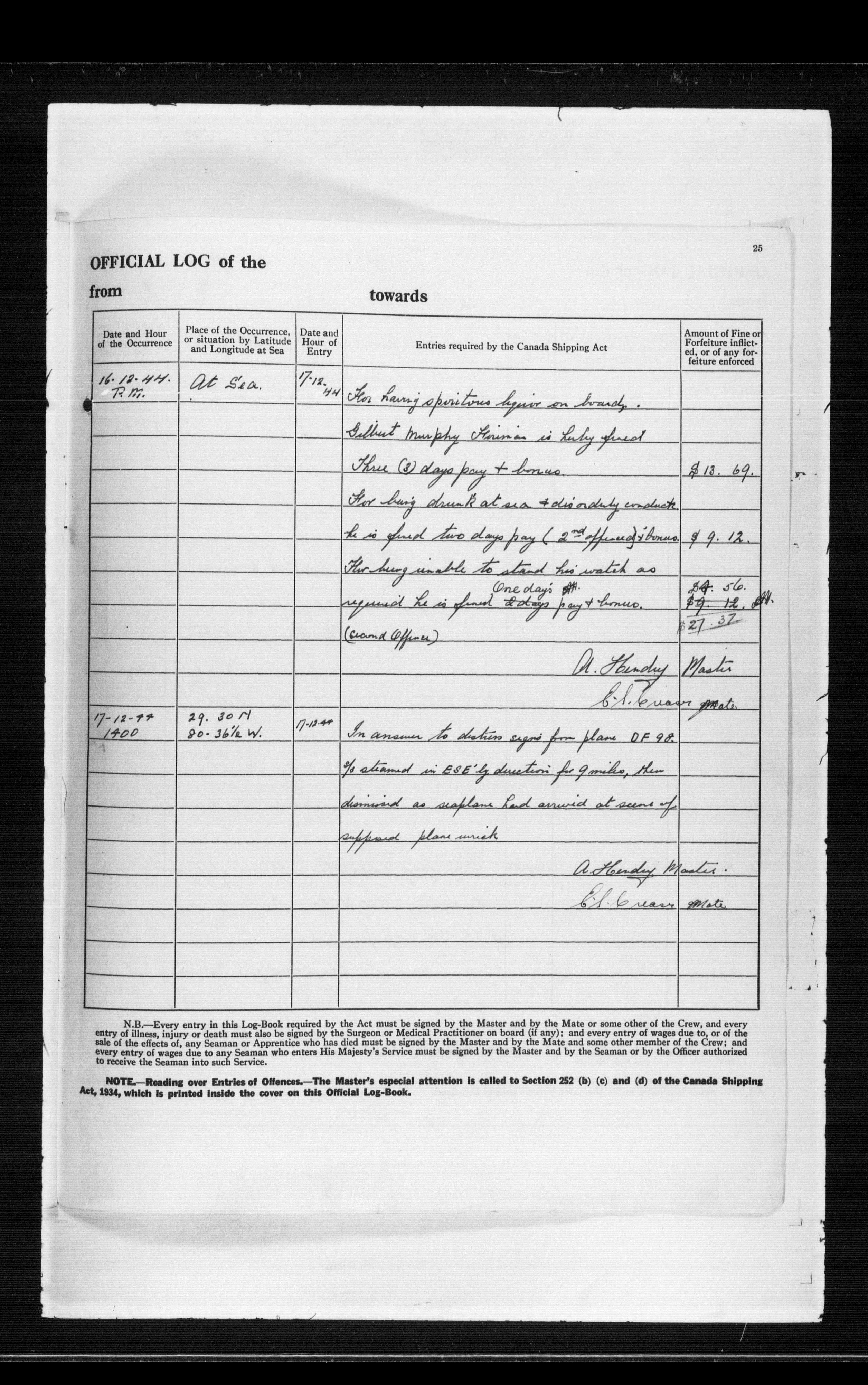 Canadian Marine Transportation Administration, Canadian Coast Guard, Ship Safety Branch, Central Registry of Seamen, Articles of Agreement and Ships' Logs - 11821