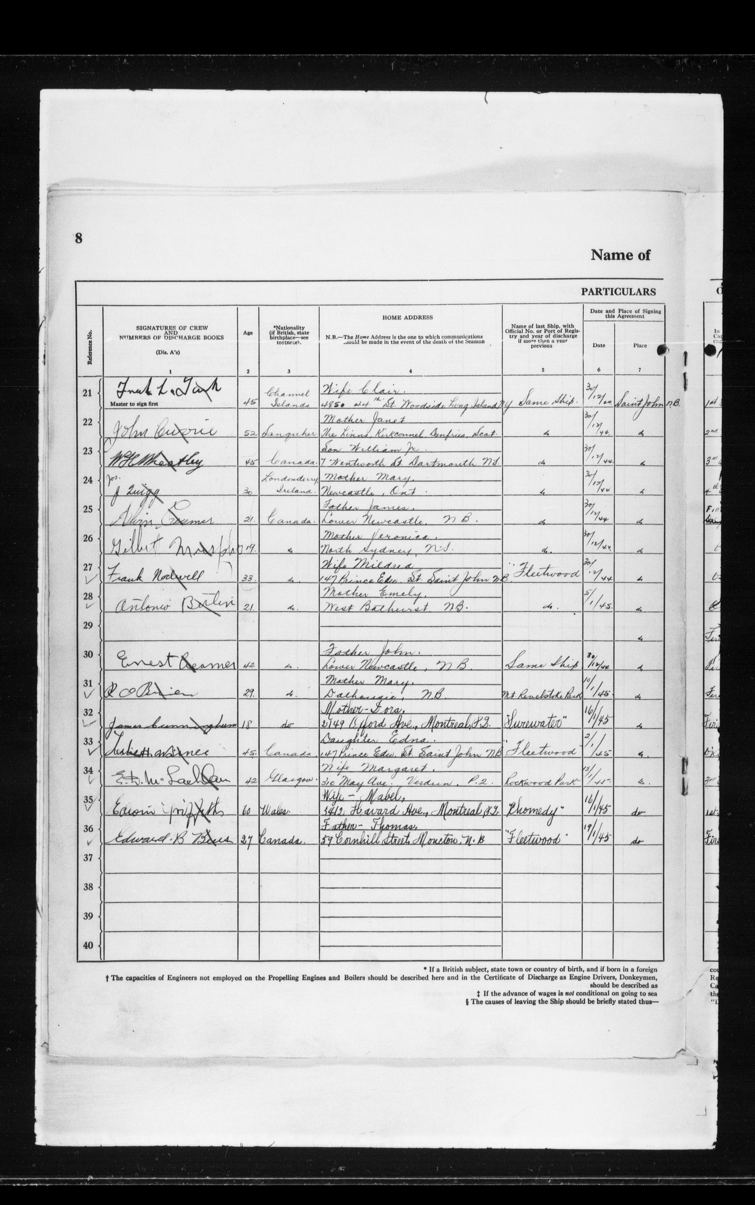 Canadian Marine Transportation Administration, Canadian Coast Guard, Ship Safety Branch, Central Registry of Seamen, Articles of Agreement and Ships' Logs - 11821