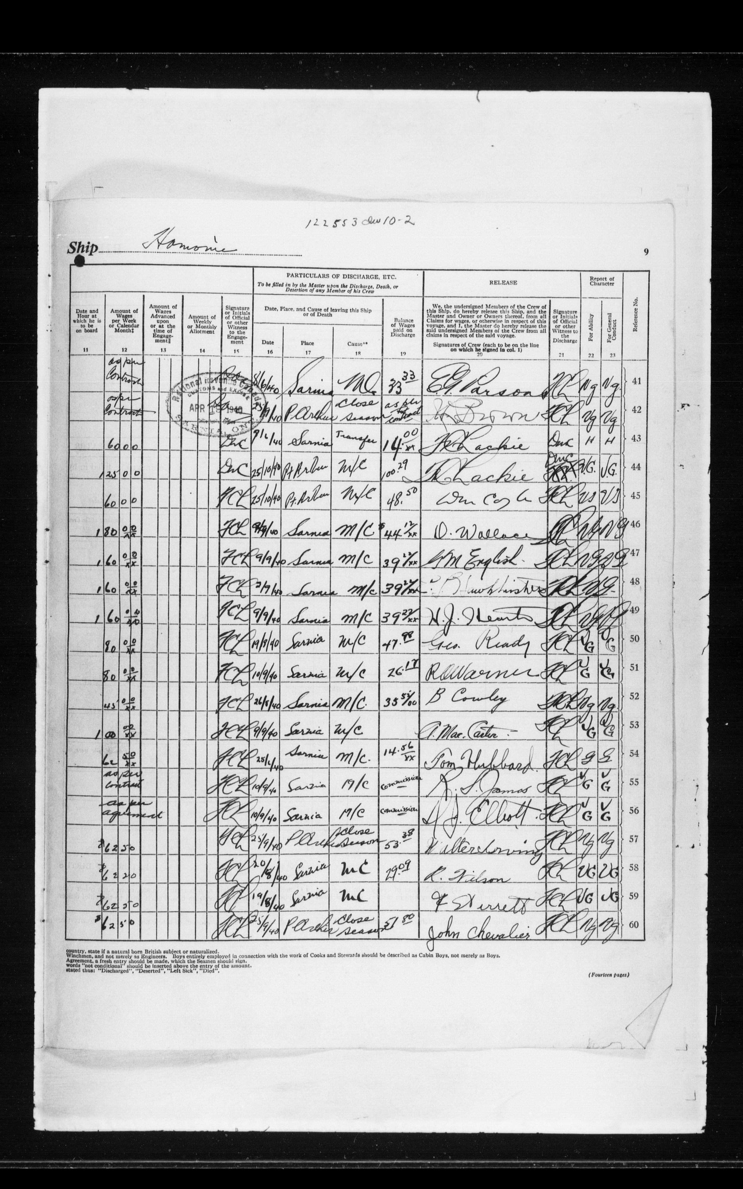 Canadian Marine Transportation Administration, Canadian Coast Guard, Ship Safety Branch, Central Registry of Seamen, Articles of Agreement and Ships' Logs - 11821
