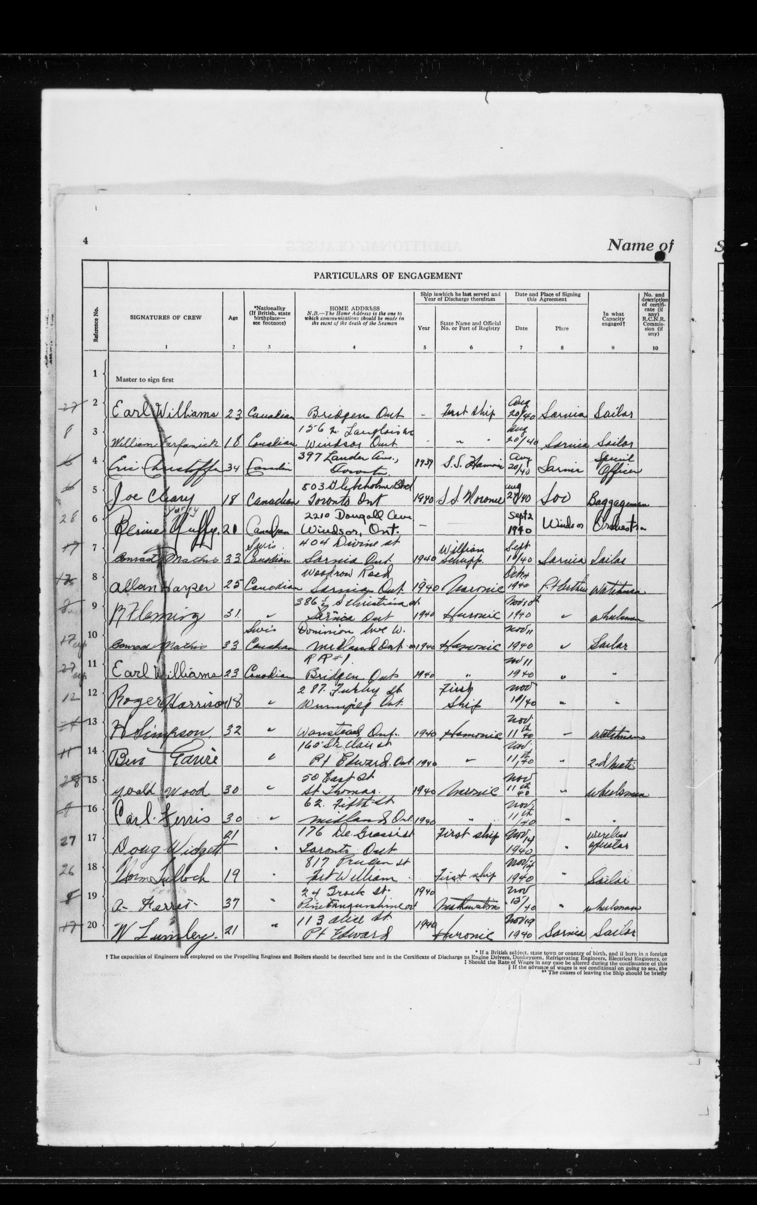 Canadian Marine Transportation Administration, Canadian Coast Guard, Ship Safety Branch, Central Registry of Seamen, Articles of Agreement and Ships' Logs - 11821