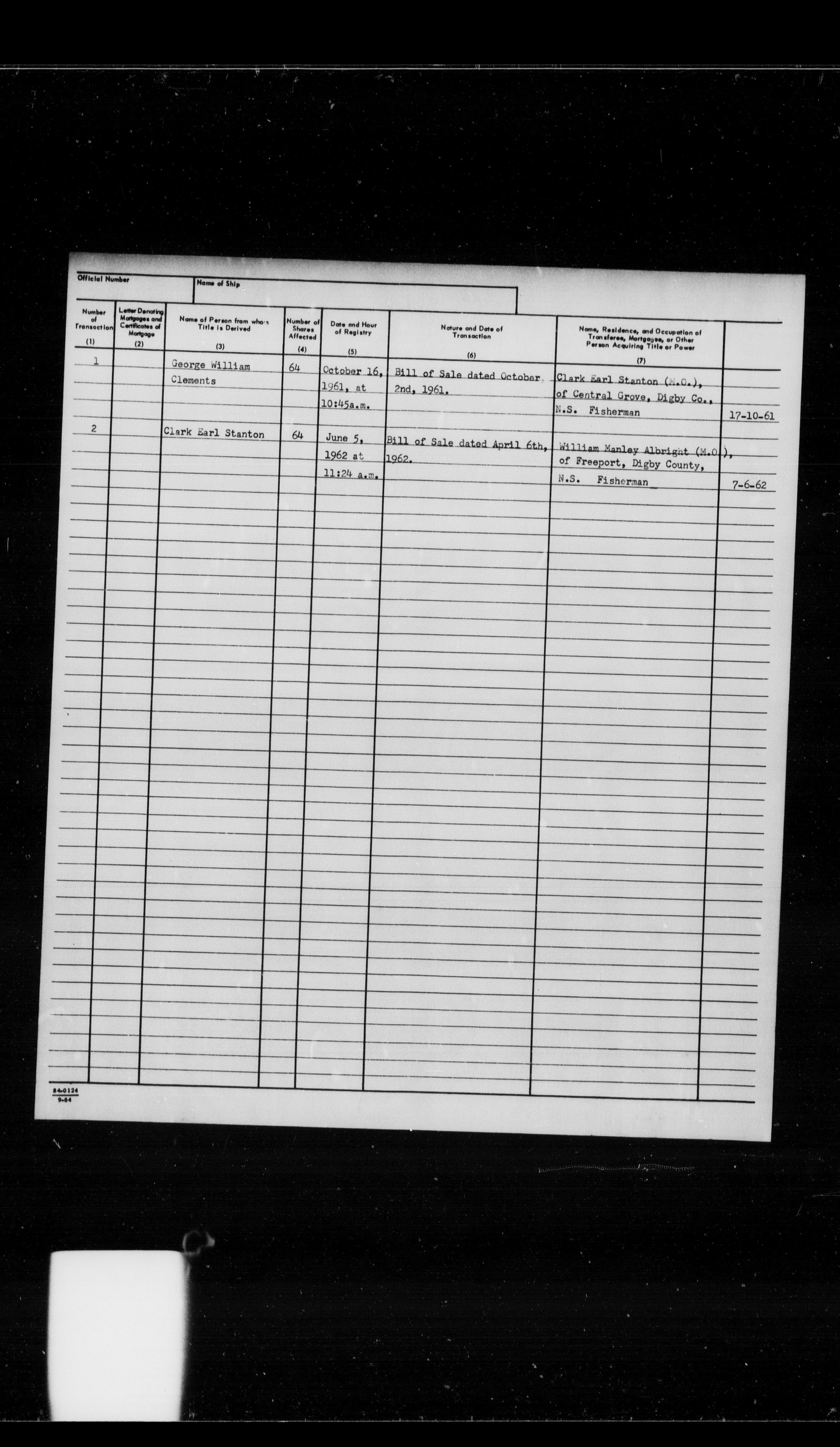 Department of Transport : Registers and ledgers cards of ships closed-out (1904-1983) - 11863