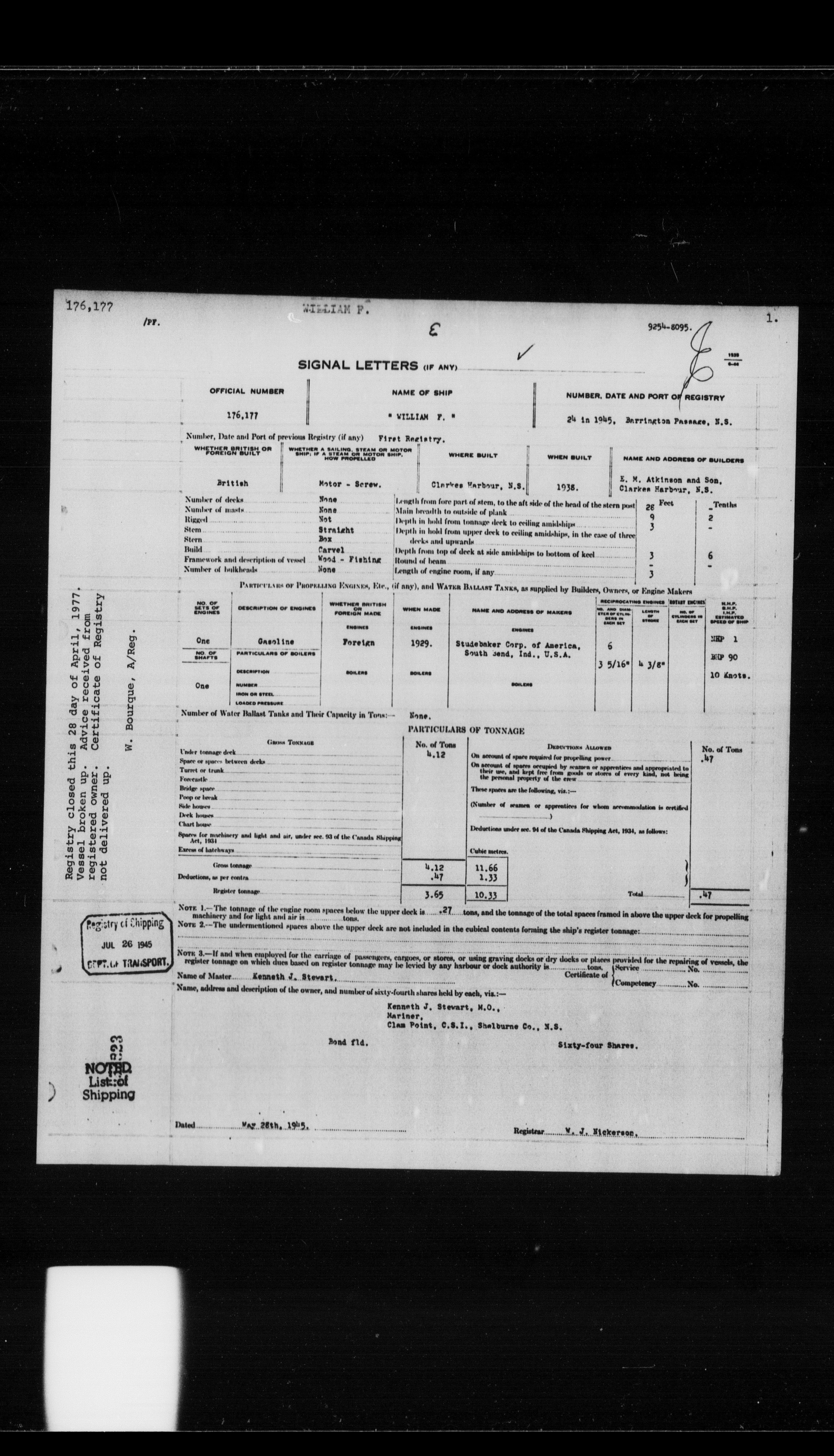 Department of Transport : Registers and ledgers cards of ships closed-out (1904-1983) - 11865