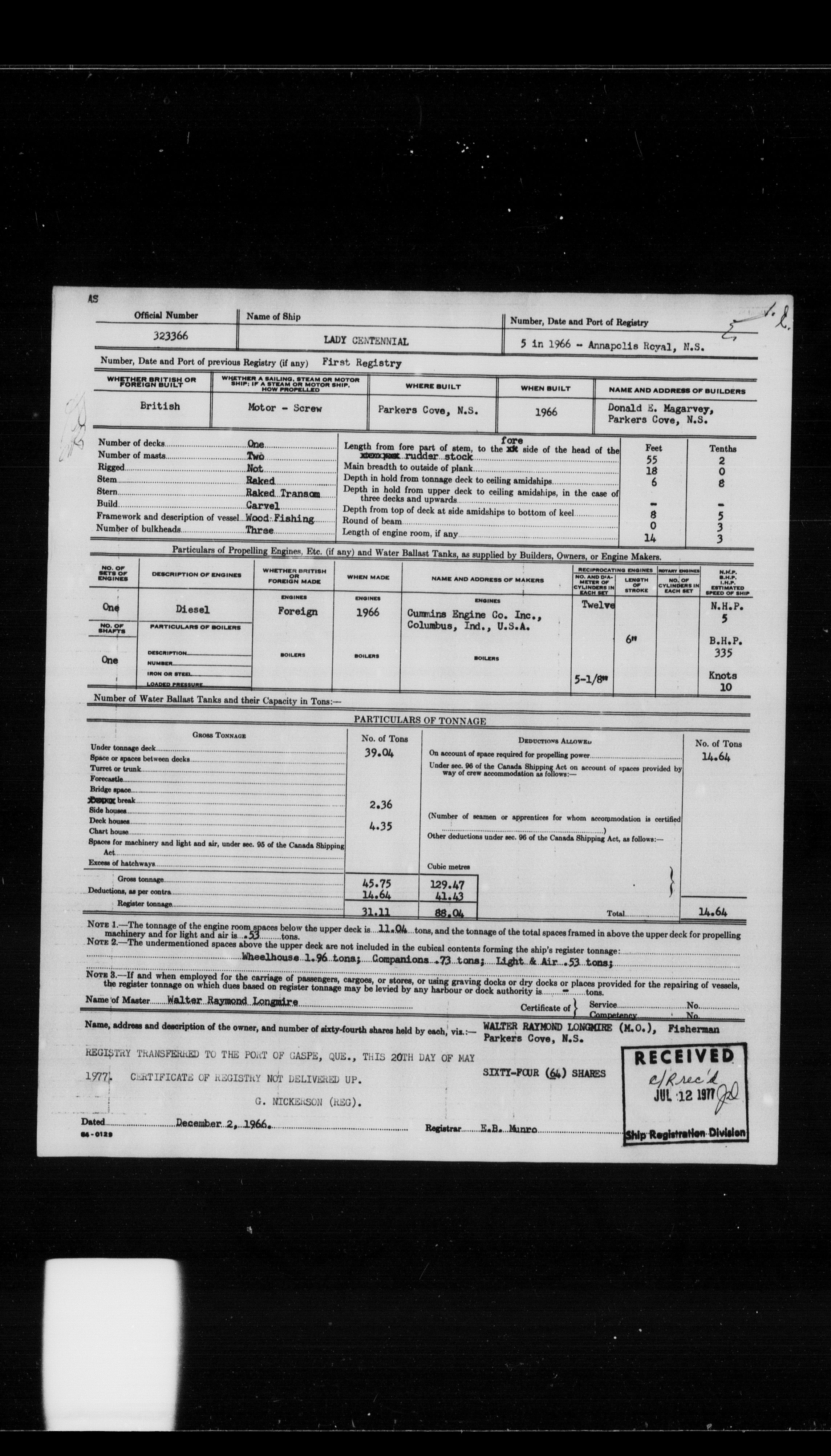 Department of Transport : Registers and ledgers cards of ships closed-out (1904-1983) - 11865