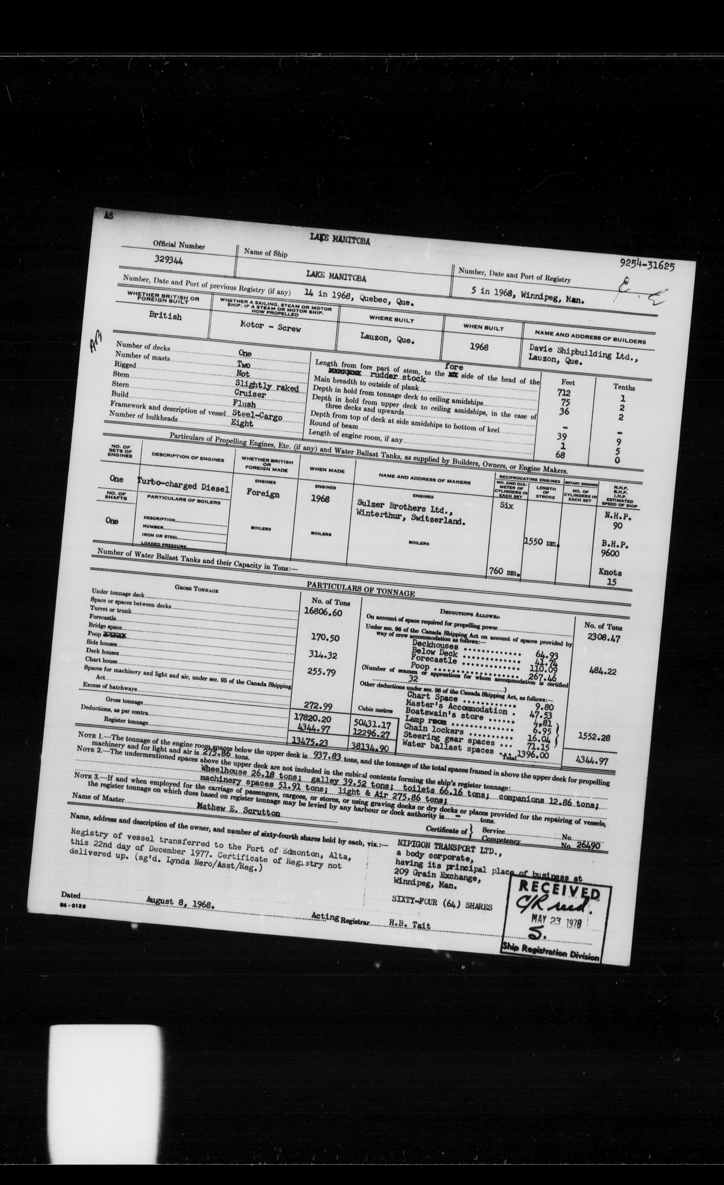 Department of Transport : Registers and ledgers cards of ships closed-out (1904-1983) - 11865