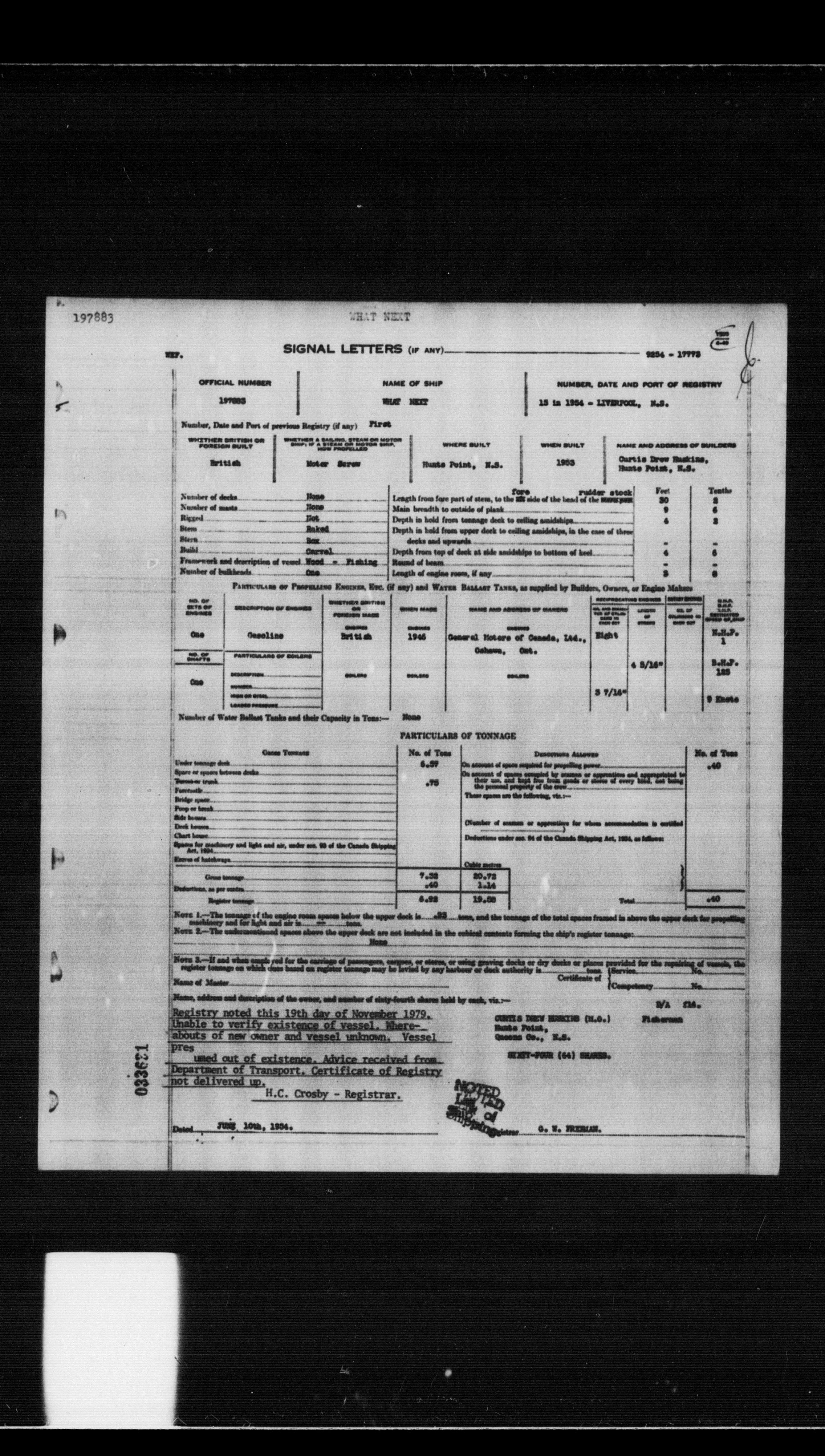 Department of Transport : Registers and ledgers cards of ships closed-out (1904-1983) - 11867