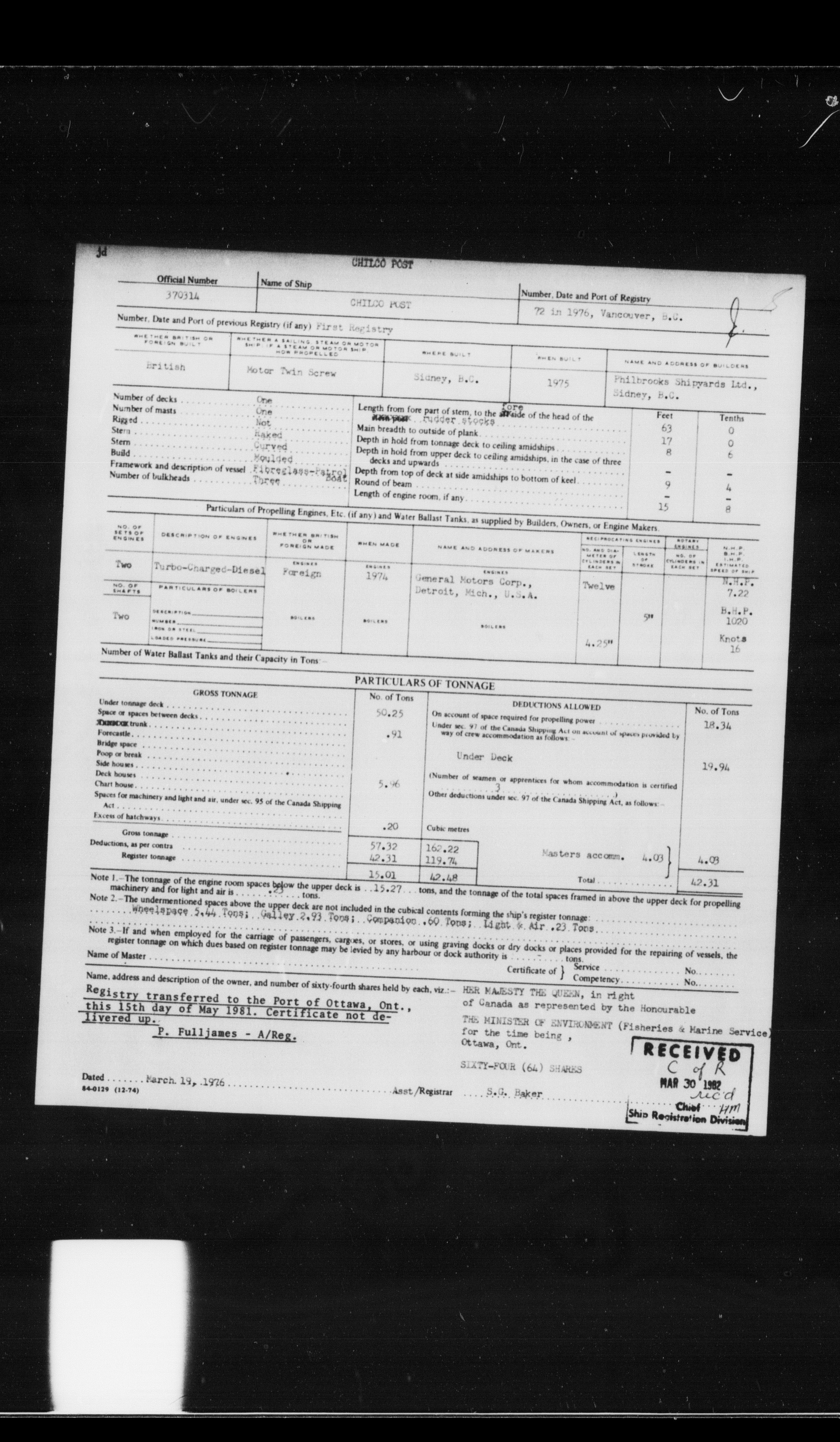 Department of Transport : Registers and ledgers cards of ships closed-out (1904-1983) - 11868