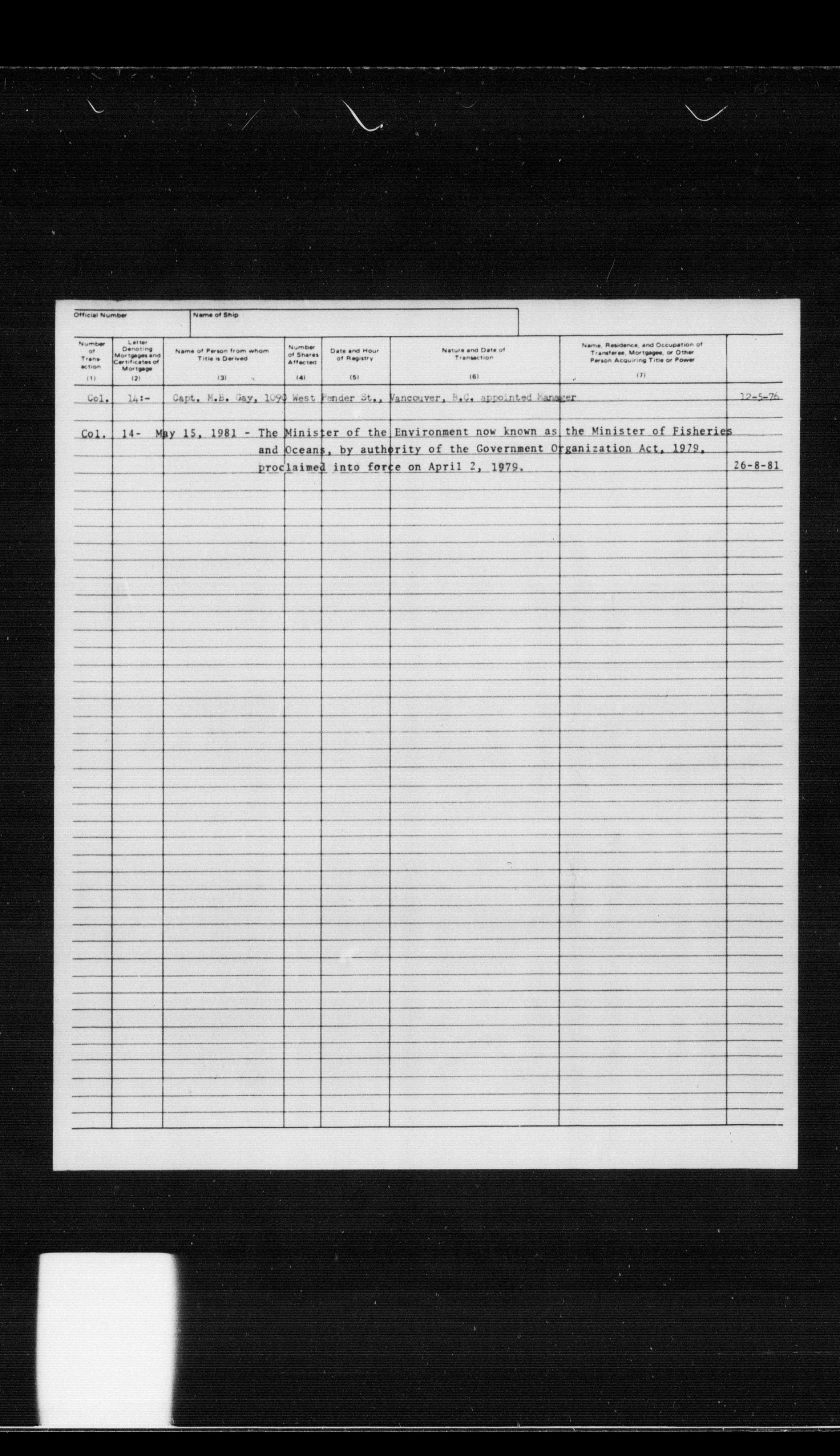 Department of Transport : Registers and ledgers cards of ships closed-out : T-11868
