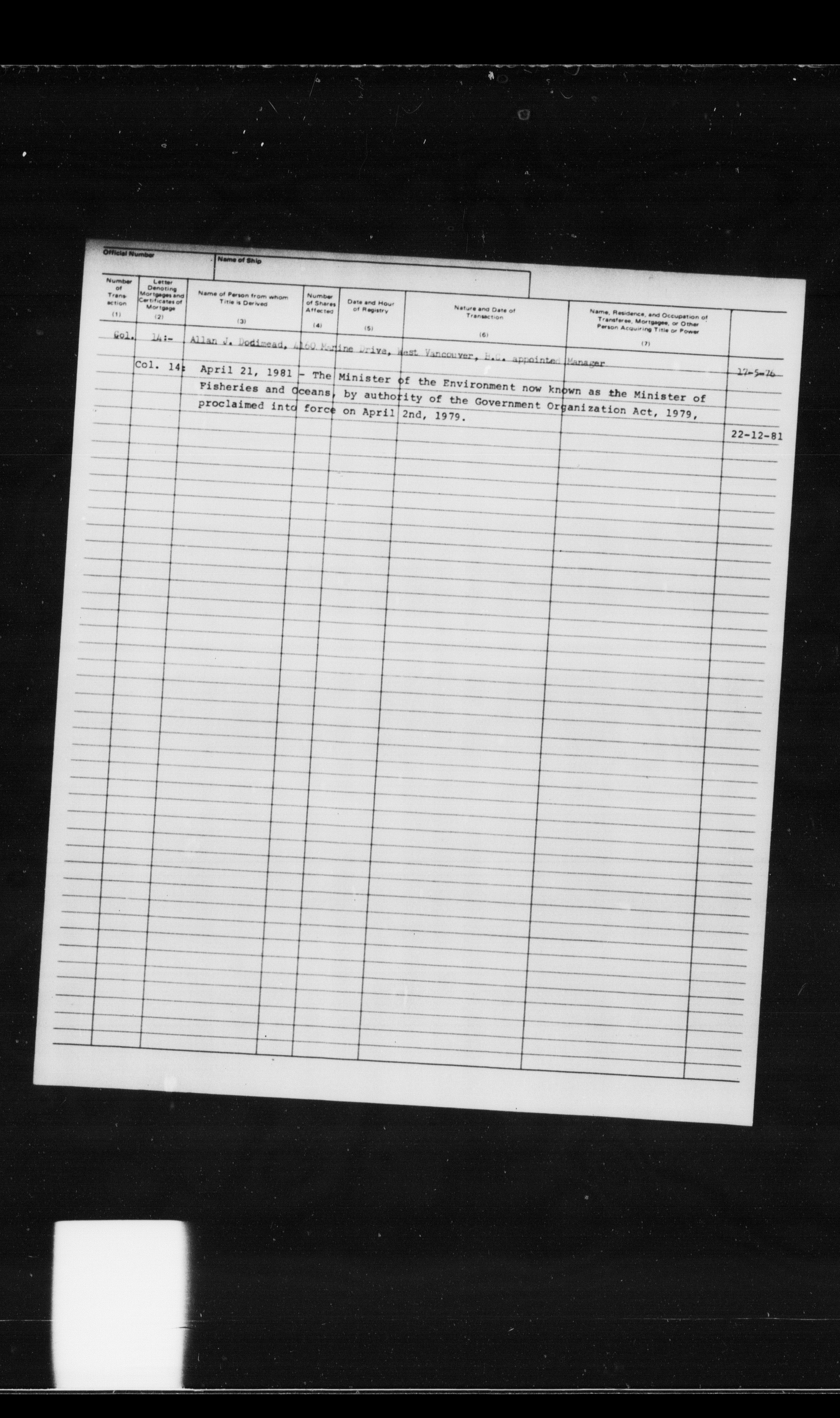 Department of Transport : Registers and ledgers cards of ships closed-out (1904-1983) - 11868