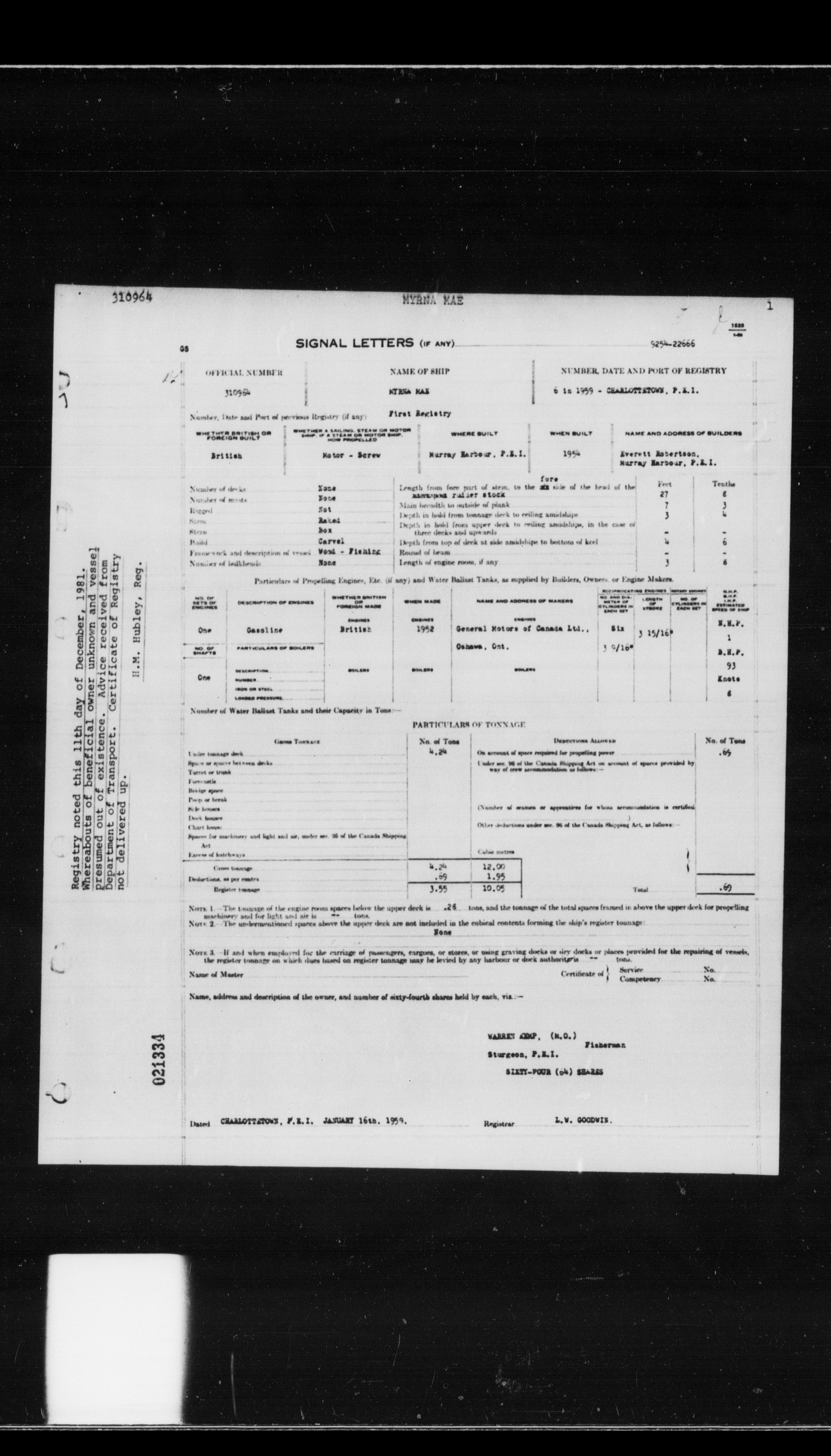 Department of Transport : Registers and ledgers cards of ships closed-out (1904-1983) - 11869