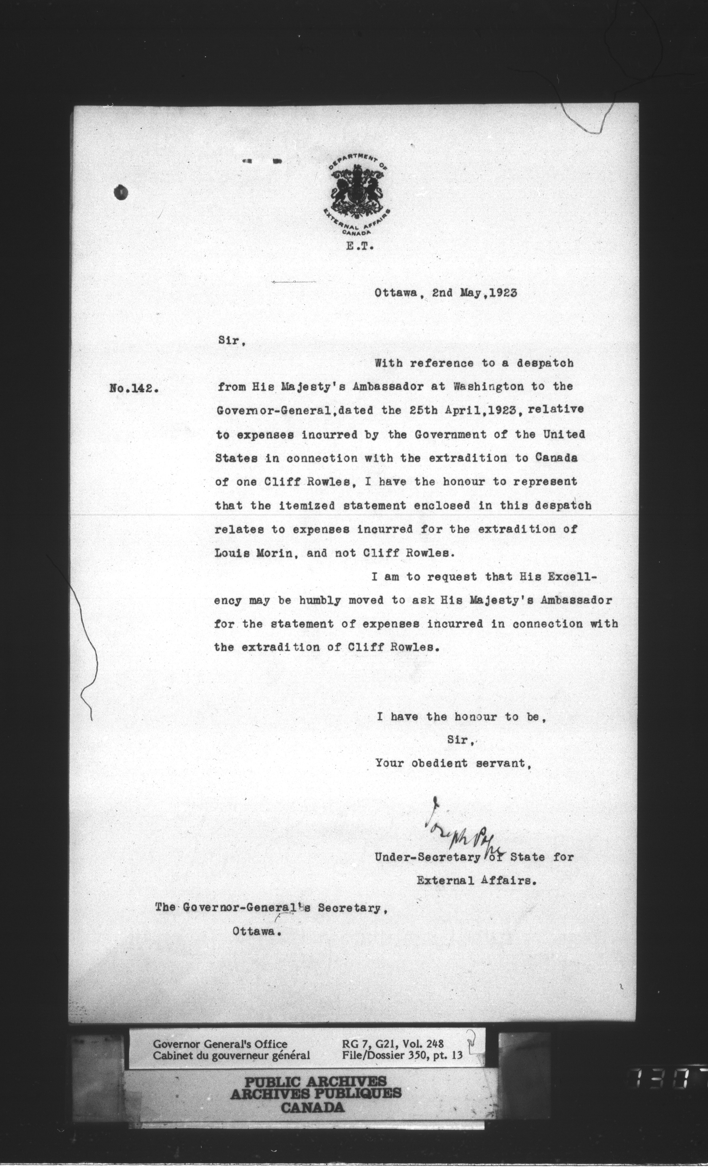 Vol. 244, file 350, pt. 7-248, file 350, pt. 13
