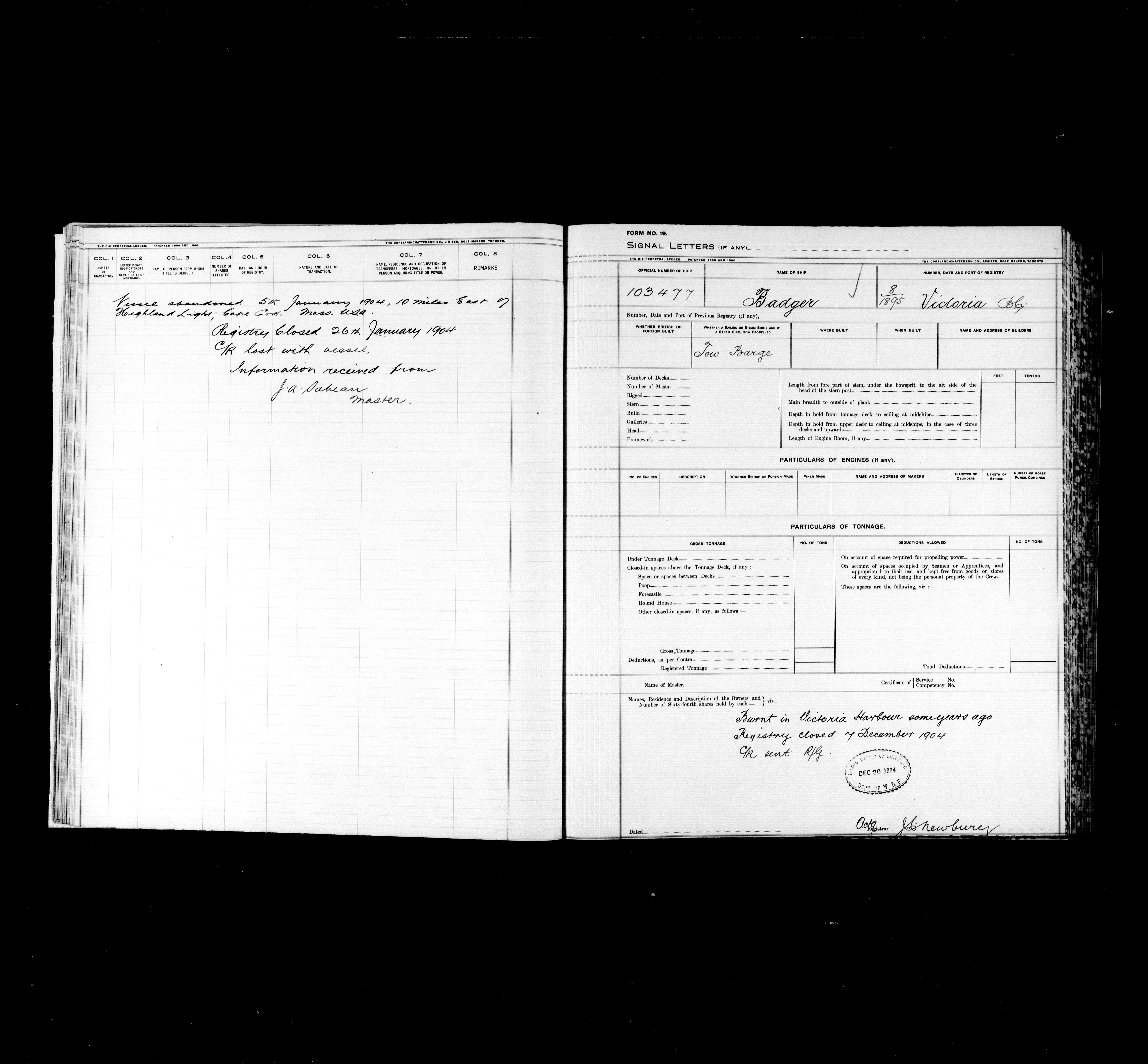 Department of Transport : Registers and ledgers cards of ships closed-out (1904-1983) - 11871