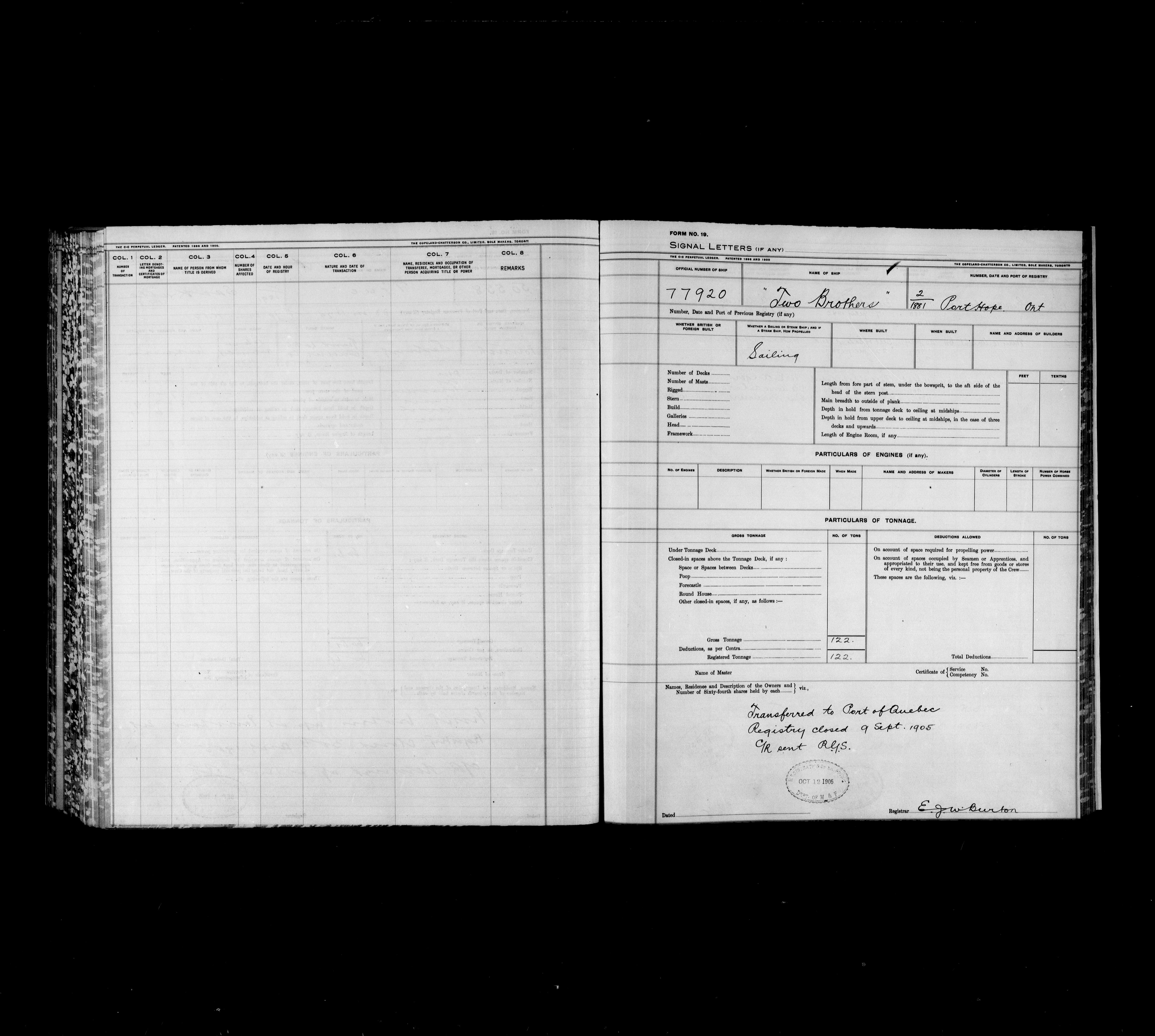 Department of Transport : Registers and ledgers cards of ships closed-out (1904-1983) - 11871
