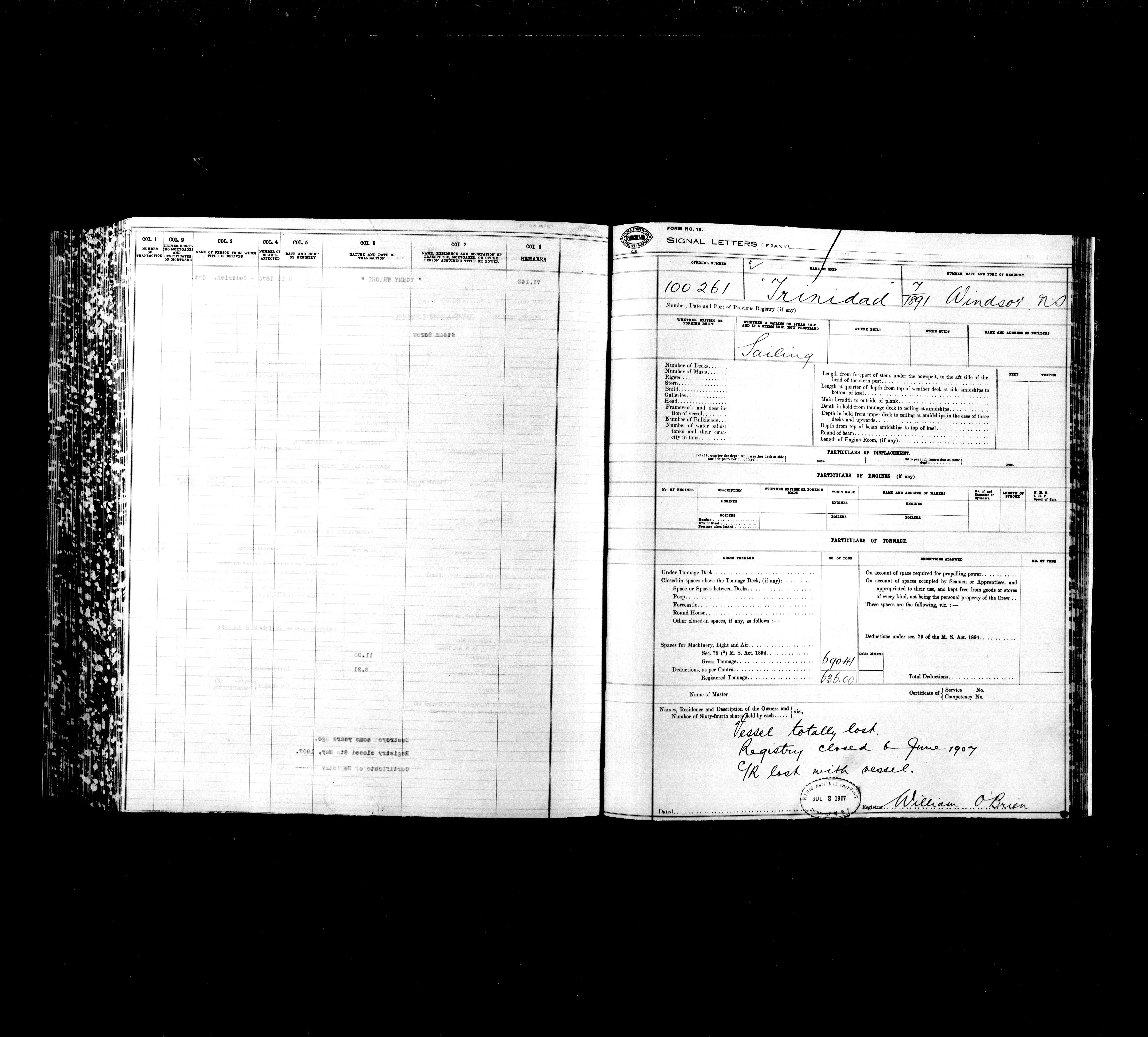 Department of Transport : Registers and ledgers cards of ships closed-out : T-11873
