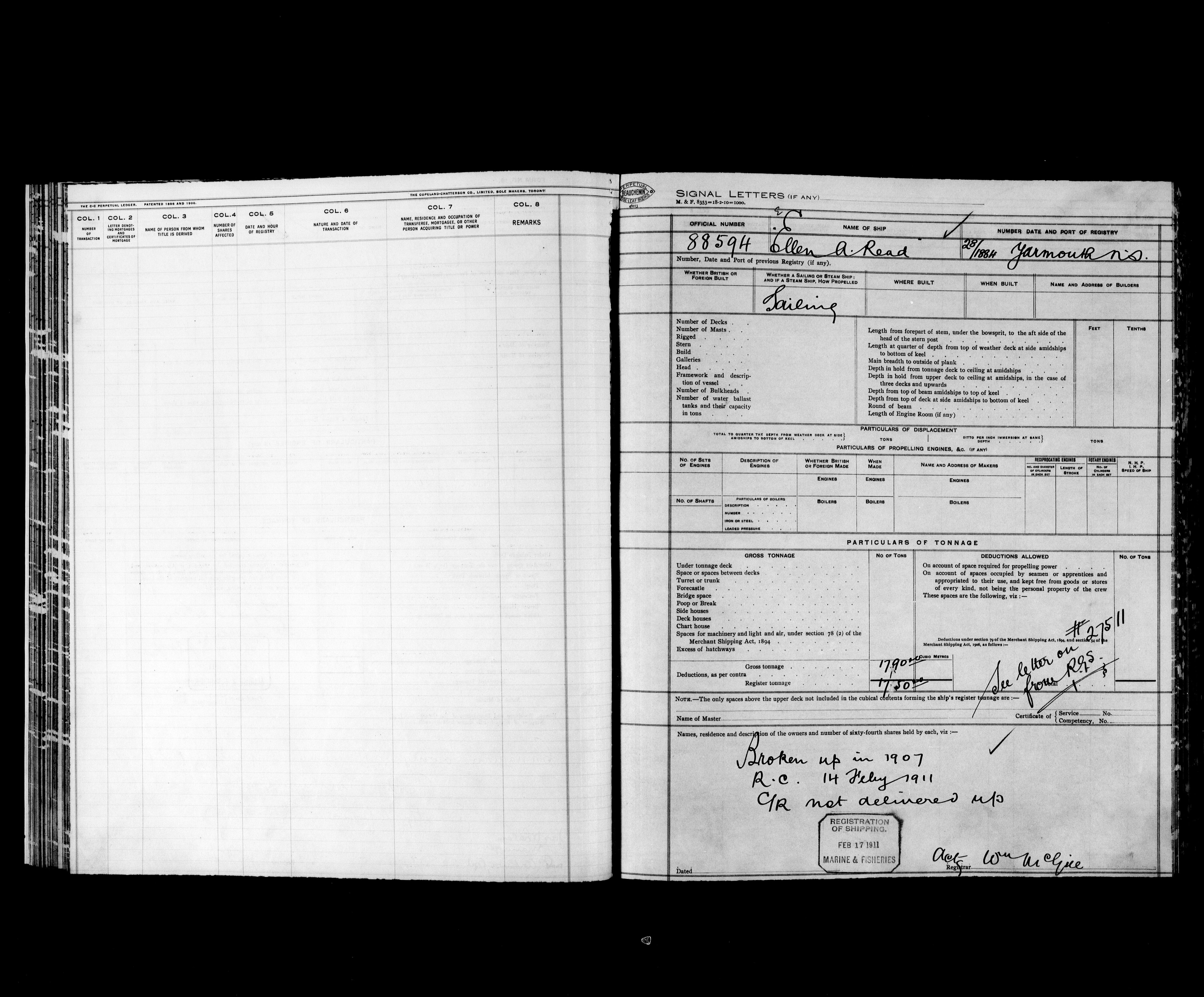 Department of Transport : Registers and ledgers cards of ships closed-out (1904-1983) - 11876