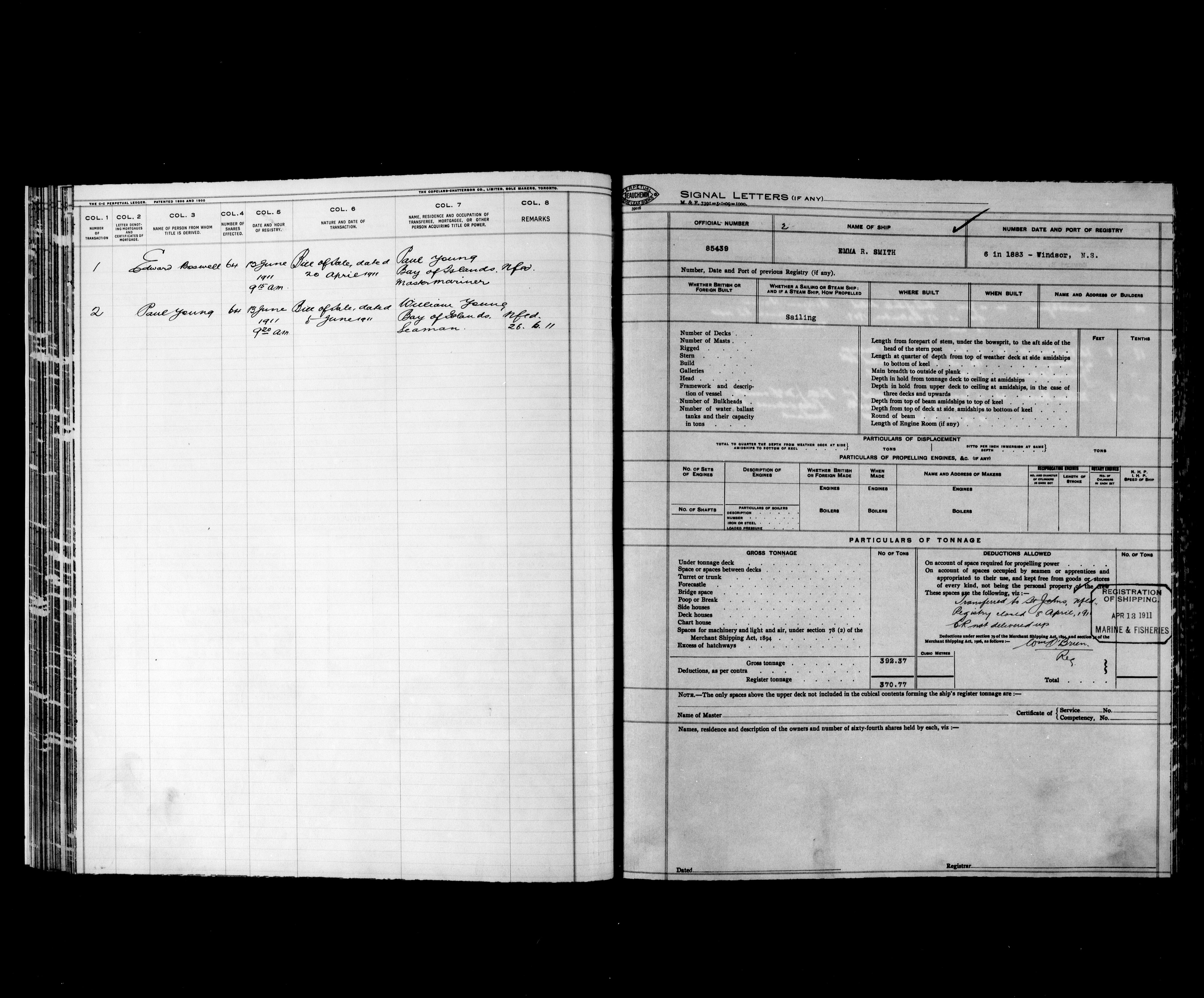 Department of Transport : Registers and ledgers cards of ships closed-out (1904-1983) - 11876