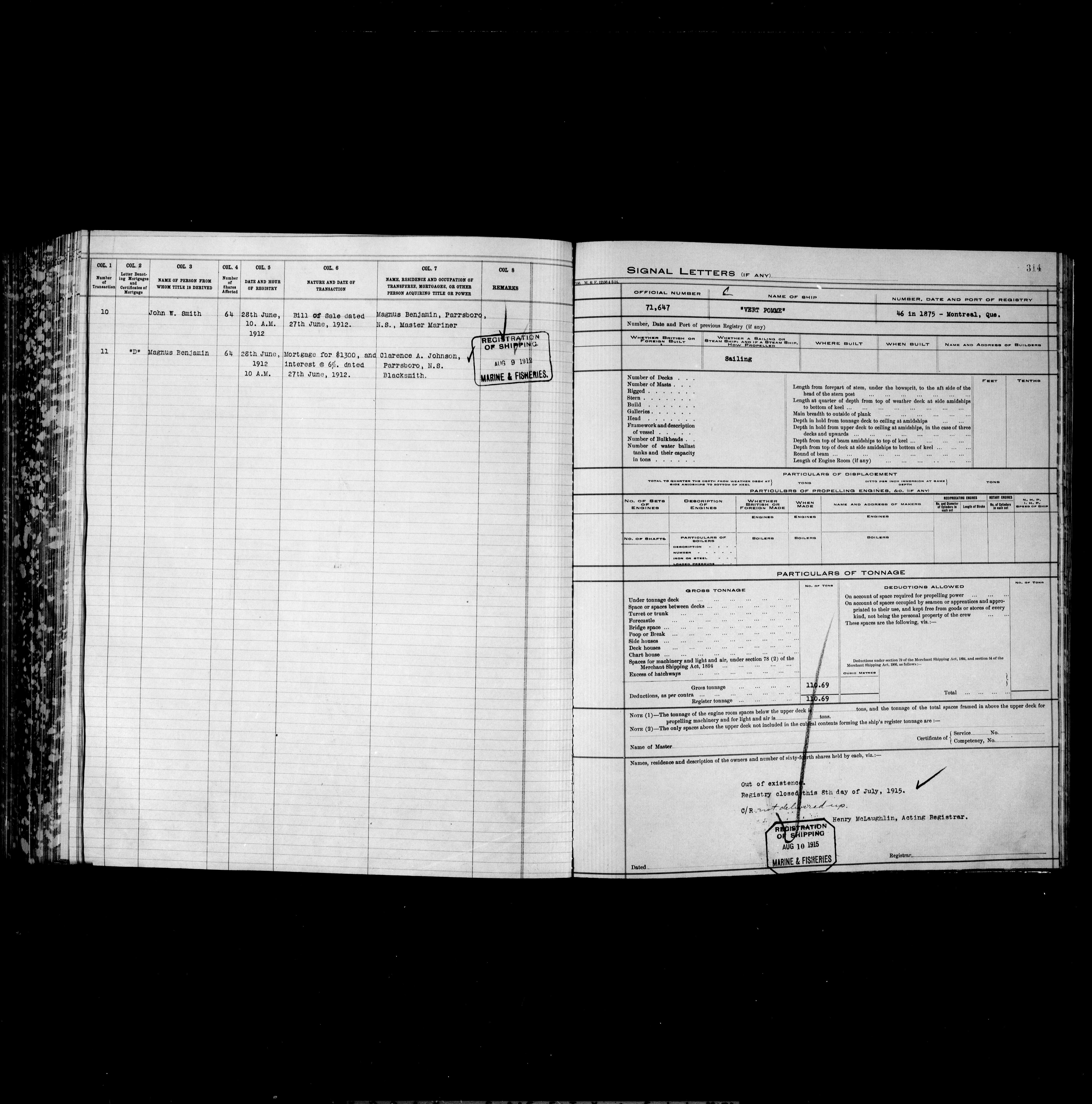 Department of Transport : Registers and ledgers cards of ships closed-out : T-11878