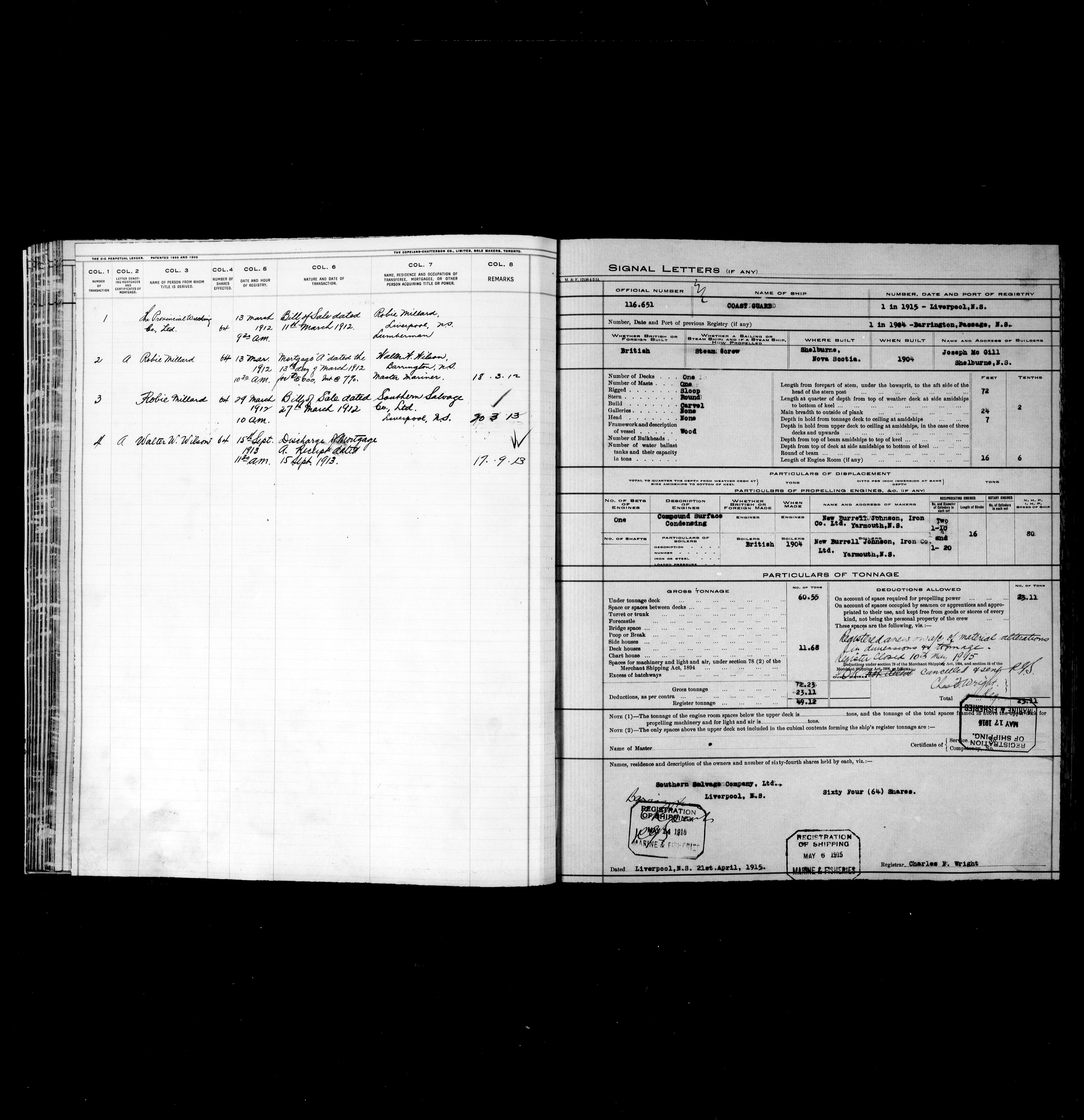 Department of Transport : Registers and ledgers cards of ships closed-out (1904-1983) - 11878