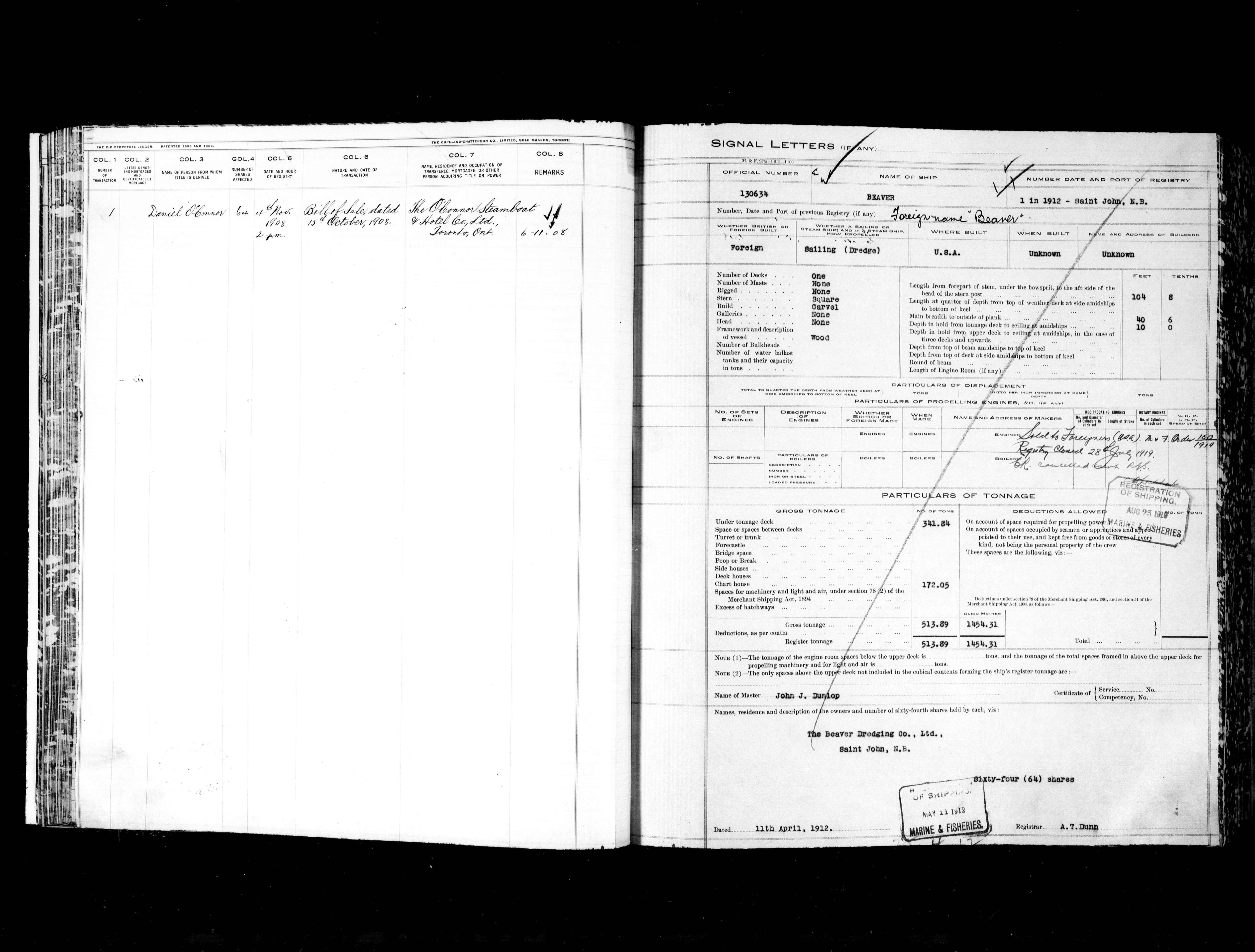 Department of Transport : Registers and ledgers cards of ships closed-out (1904-1983) - 11882