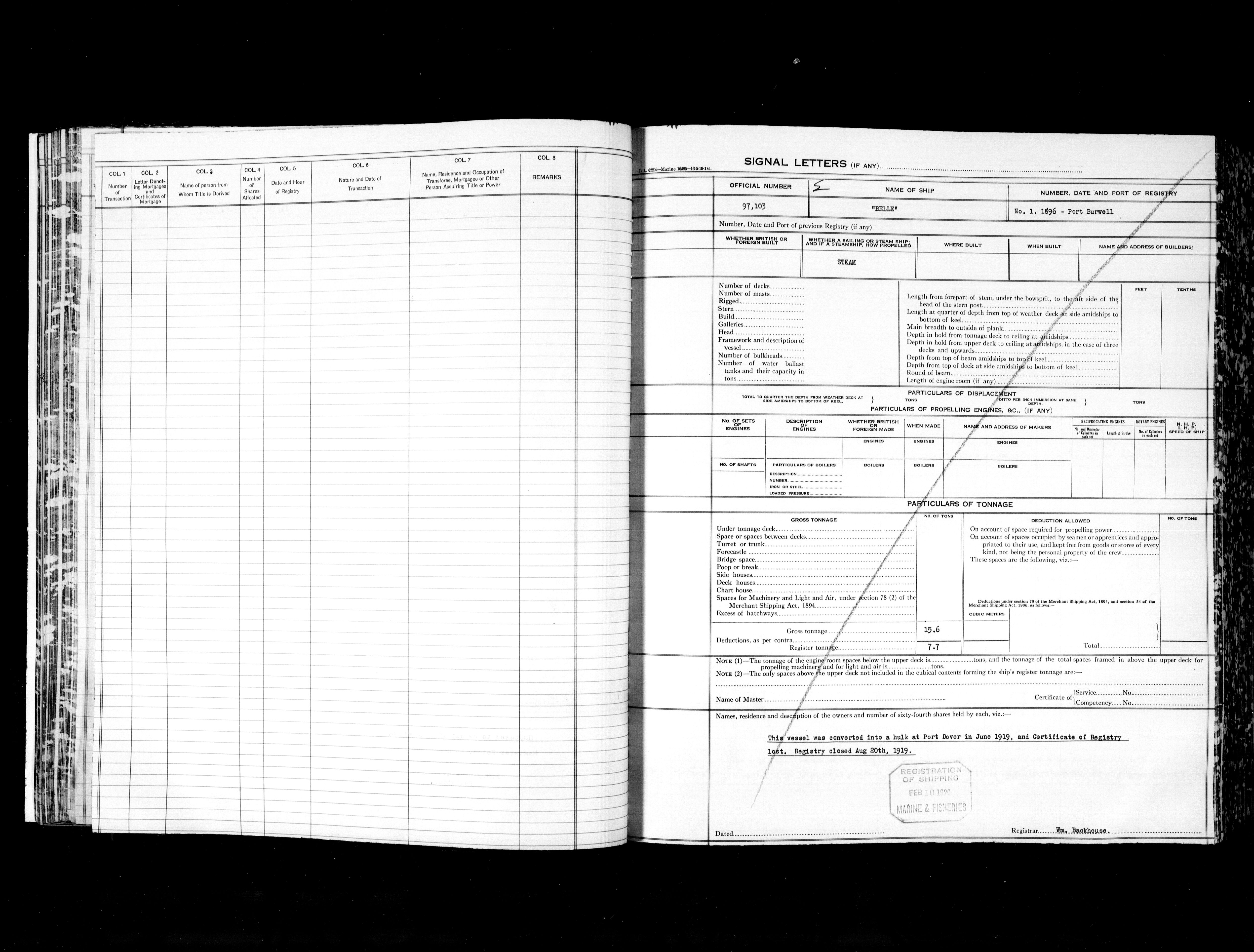 Department of Transport : Registers and ledgers cards of ships closed-out (1904-1983) - 11882