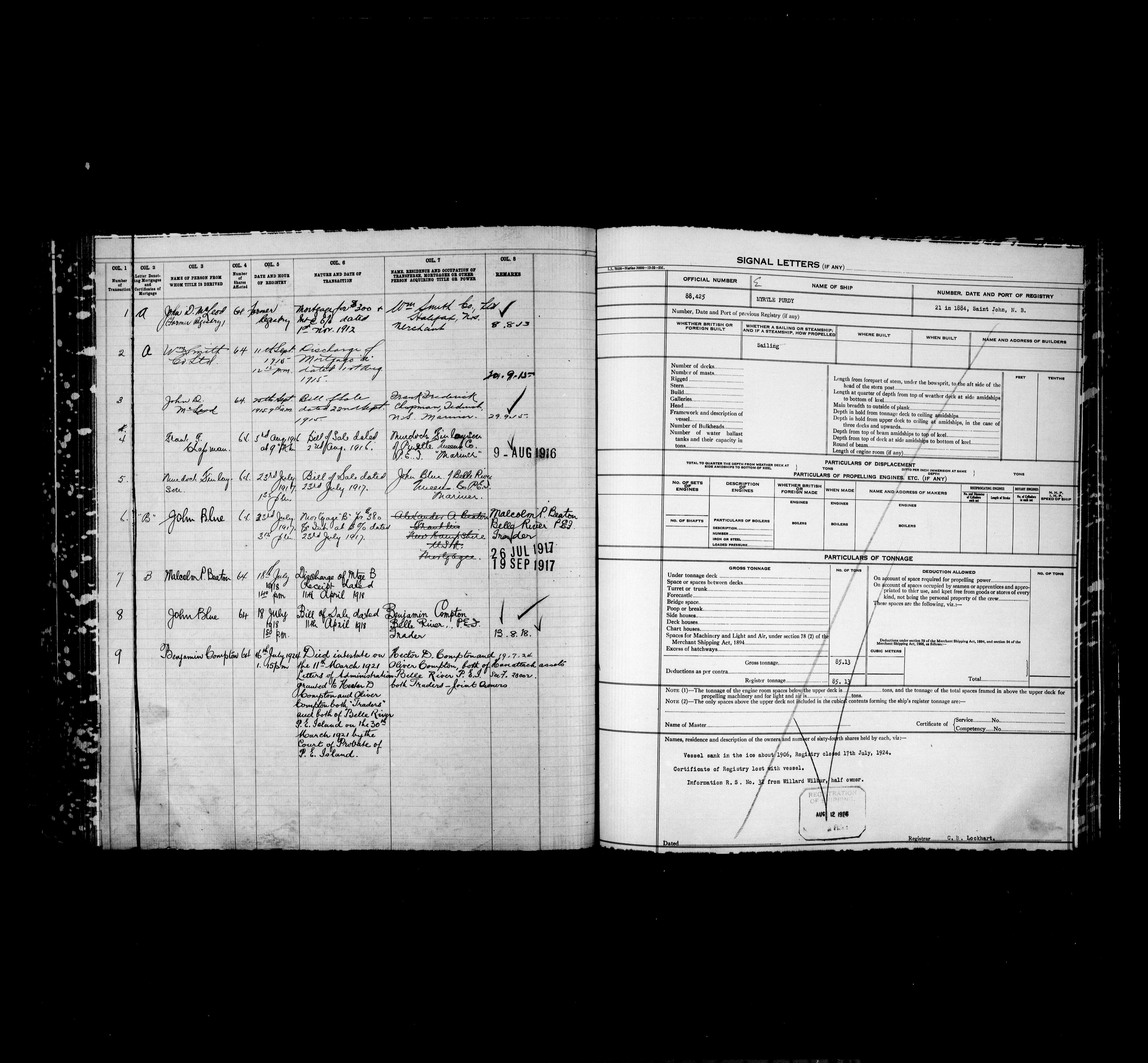 Department of Transport : Registers and ledgers cards of ships closed-out (1904-1983) - 11887