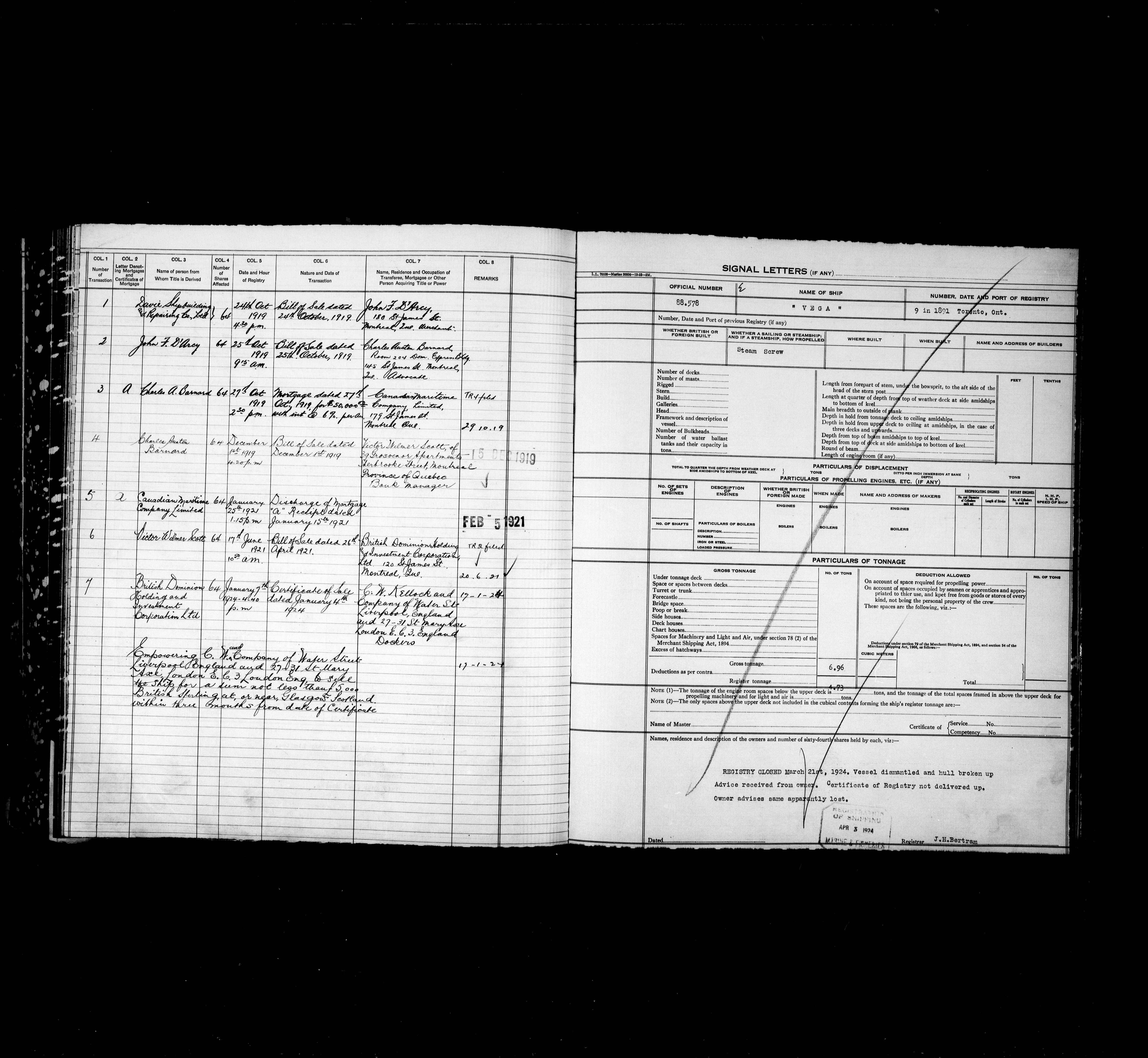 Department of Transport : Registers and ledgers cards of ships closed-out (1904-1983) - 11888
