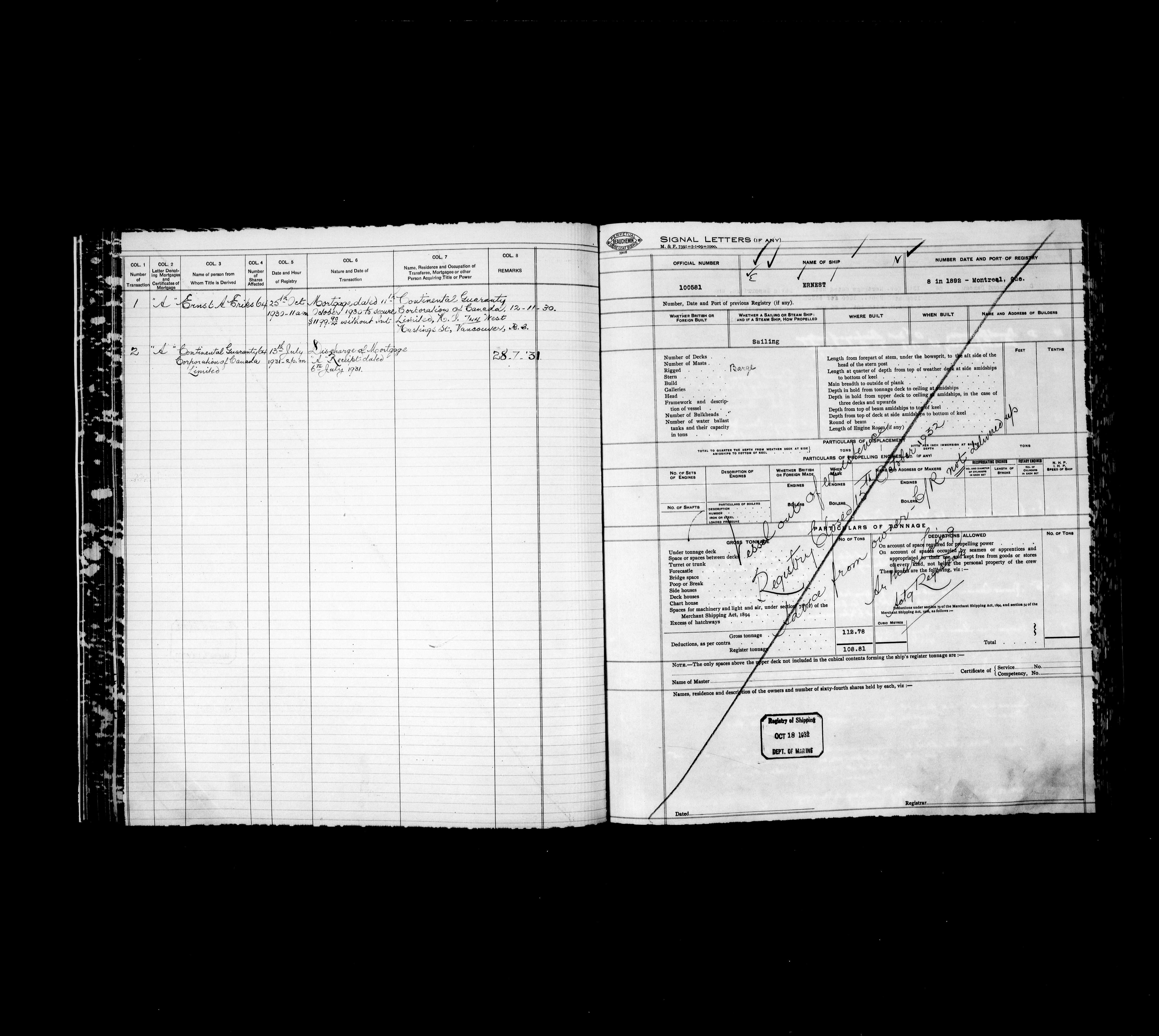 Department of Transport : Registers and ledgers cards of ships closed-out (1904-1983) - 11892