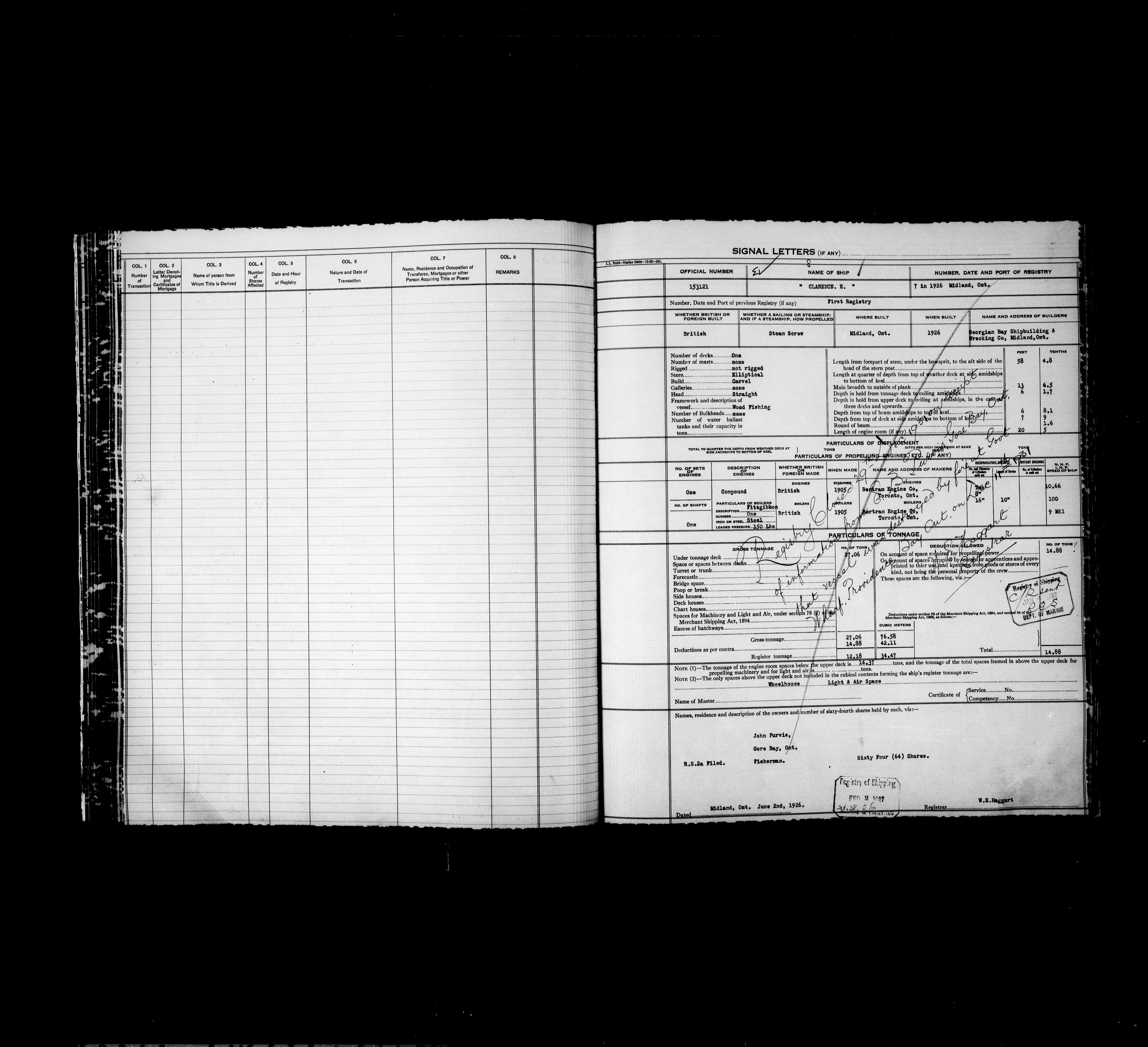 Department of Transport : Registers and ledgers cards of ships closed-out (1904-1983) - 11892