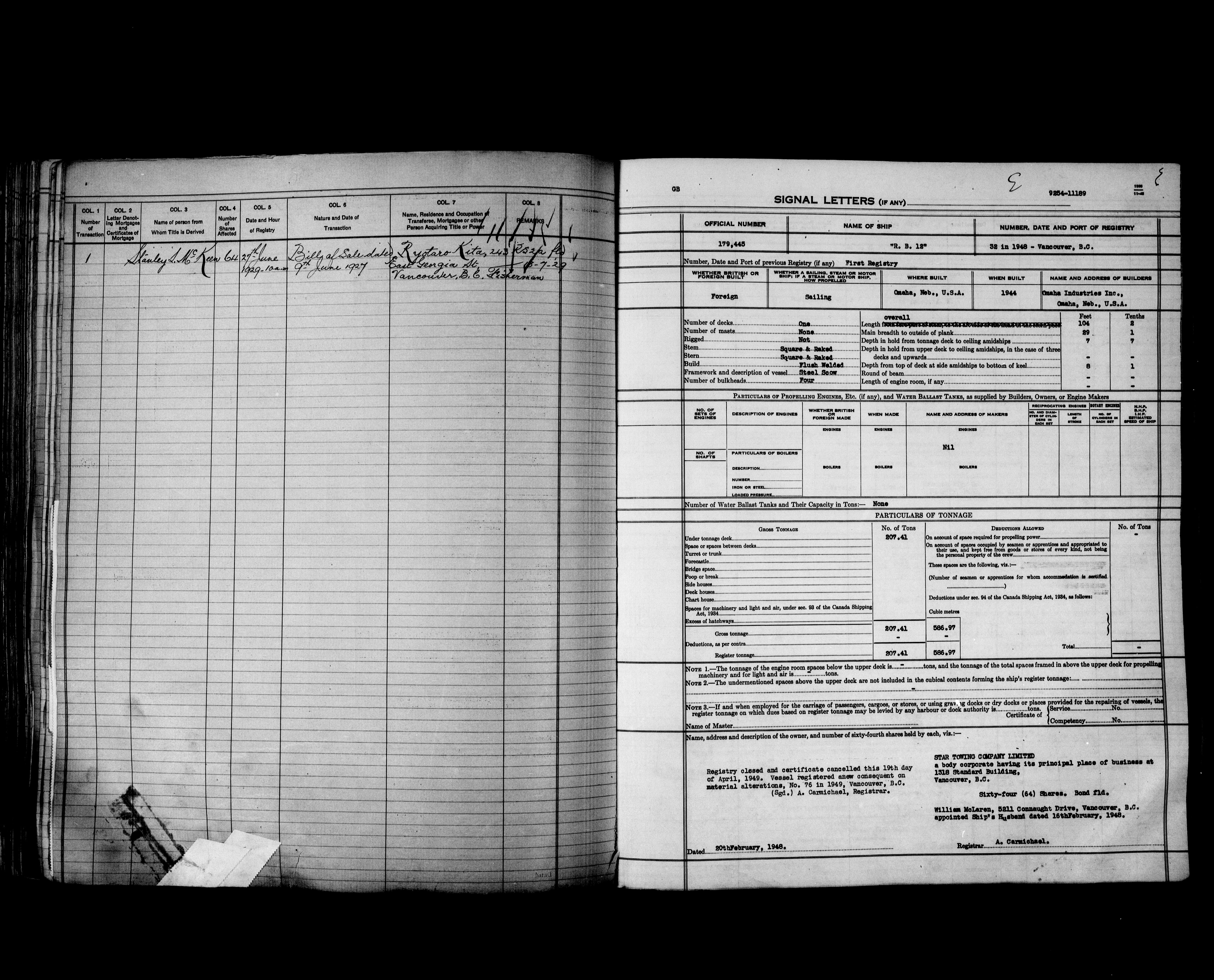 Department of Transport : Registers and ledgers cards of ships closed-out (1904-1983) - 11907