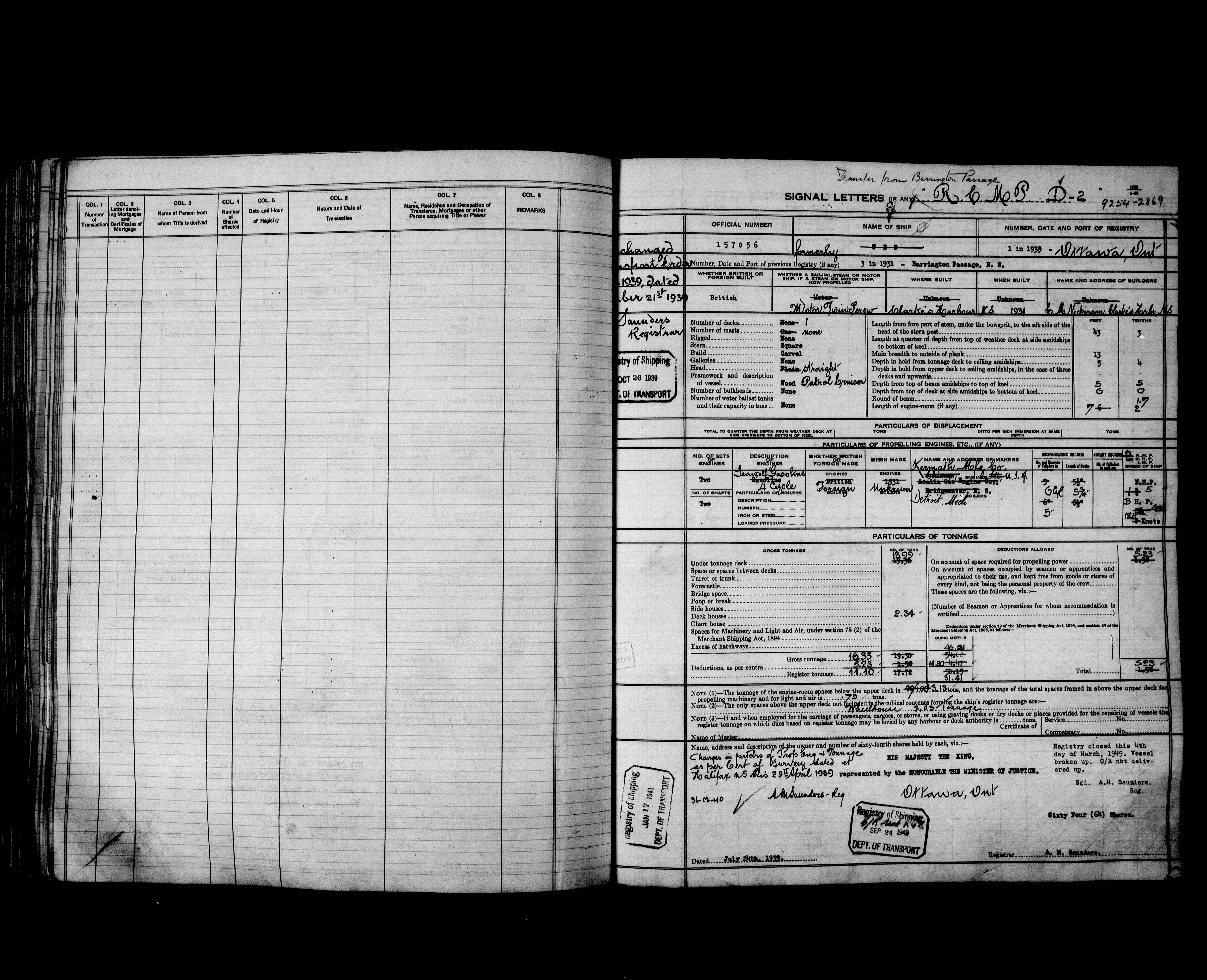 Department of Transport : Registers and ledgers cards of ships closed-out (1904-1983) - 11907
