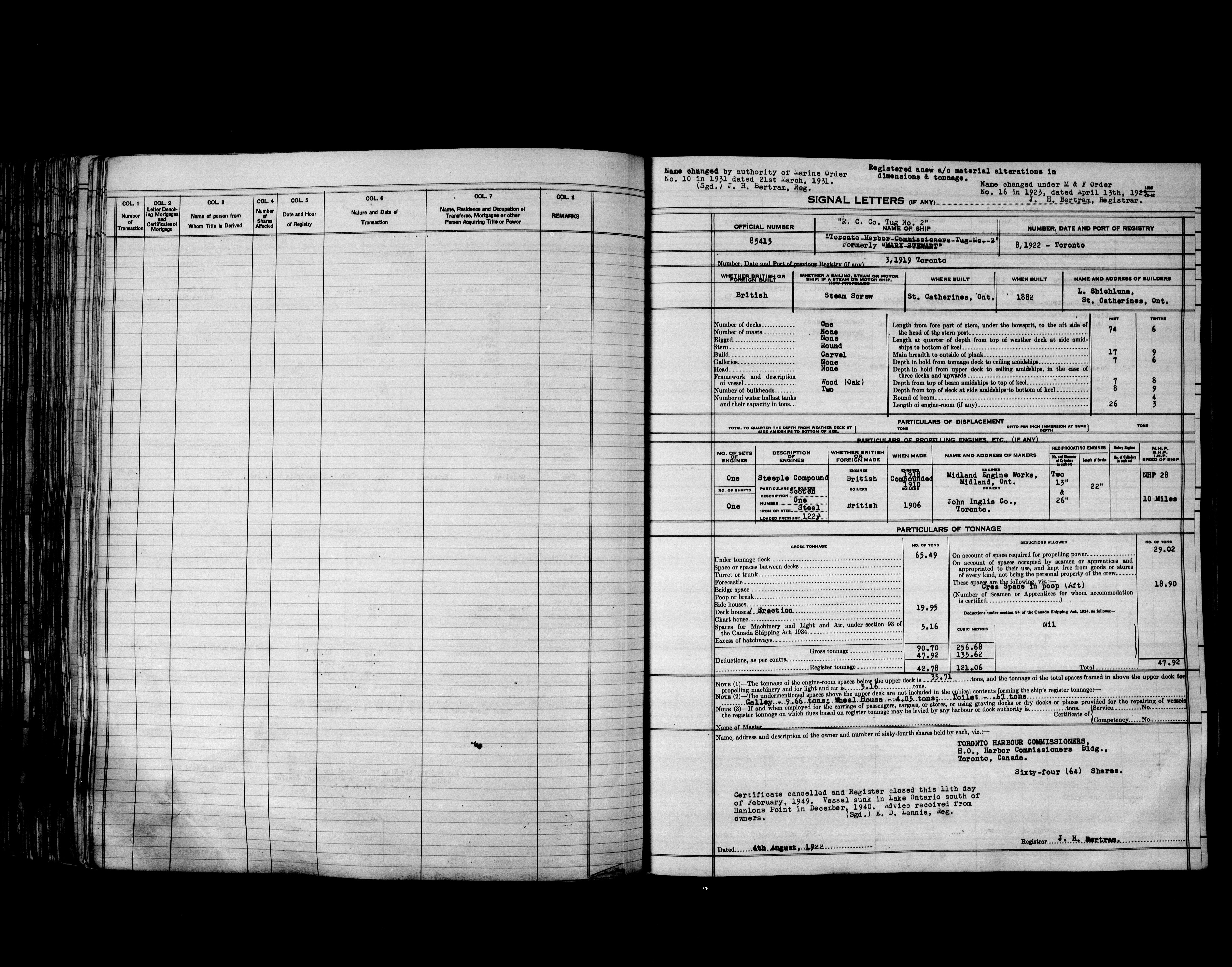Department of Transport : Registers and ledgers cards of ships closed-out (1904-1983) - 11907