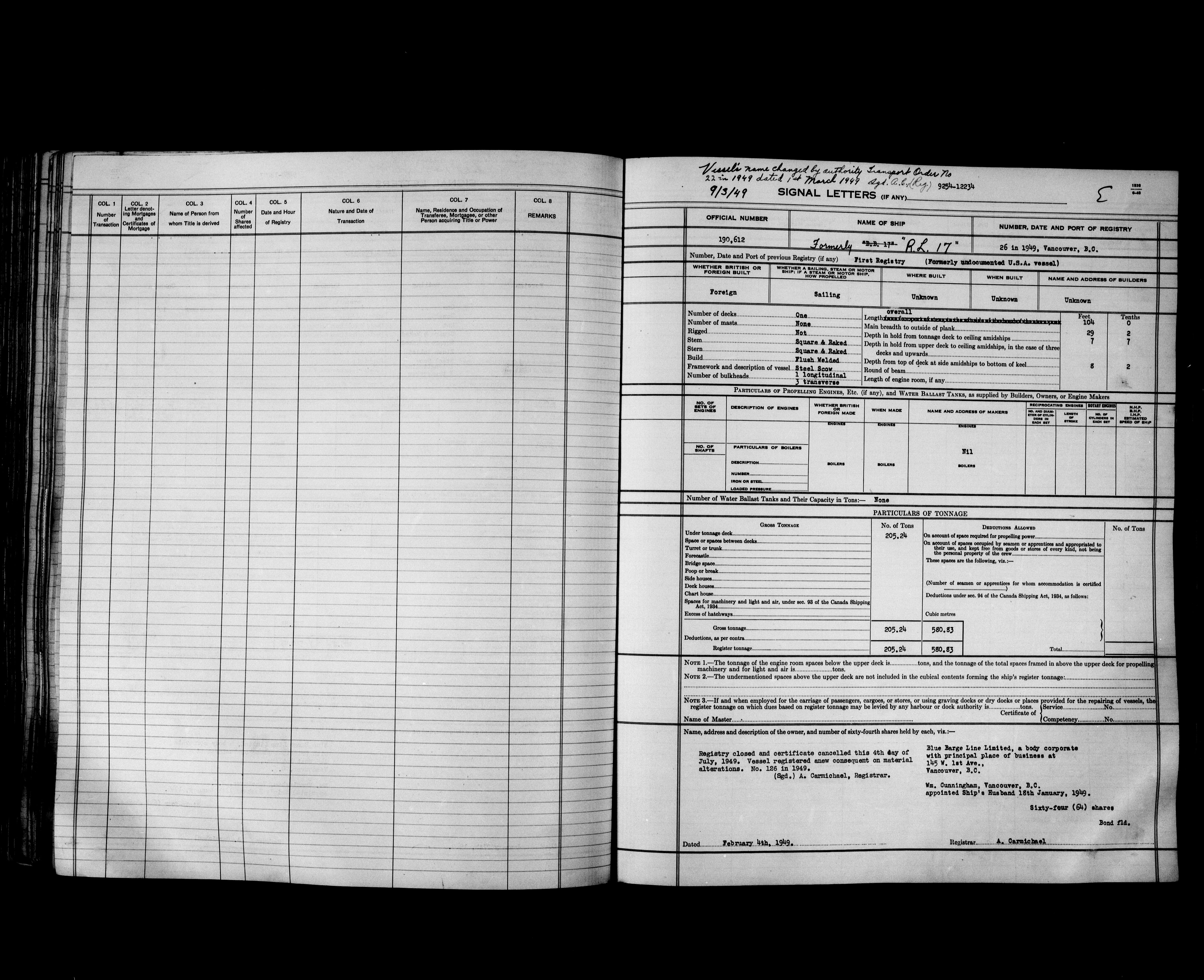 Department of Transport : Registers and ledgers cards of ships closed-out (1904-1983) - 11907