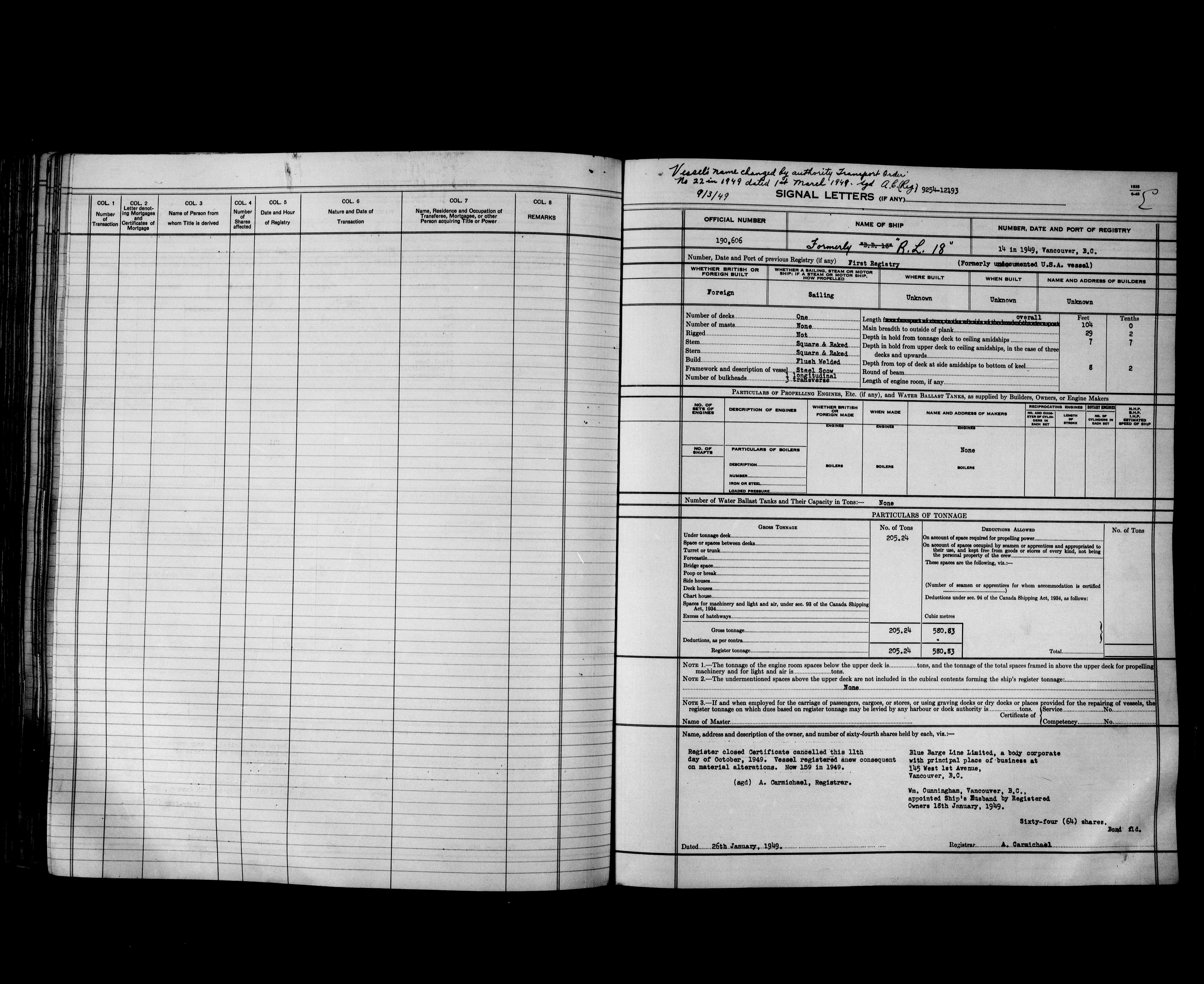 Department of Transport : Registers and ledgers cards of ships closed-out (1904-1983) - 11907