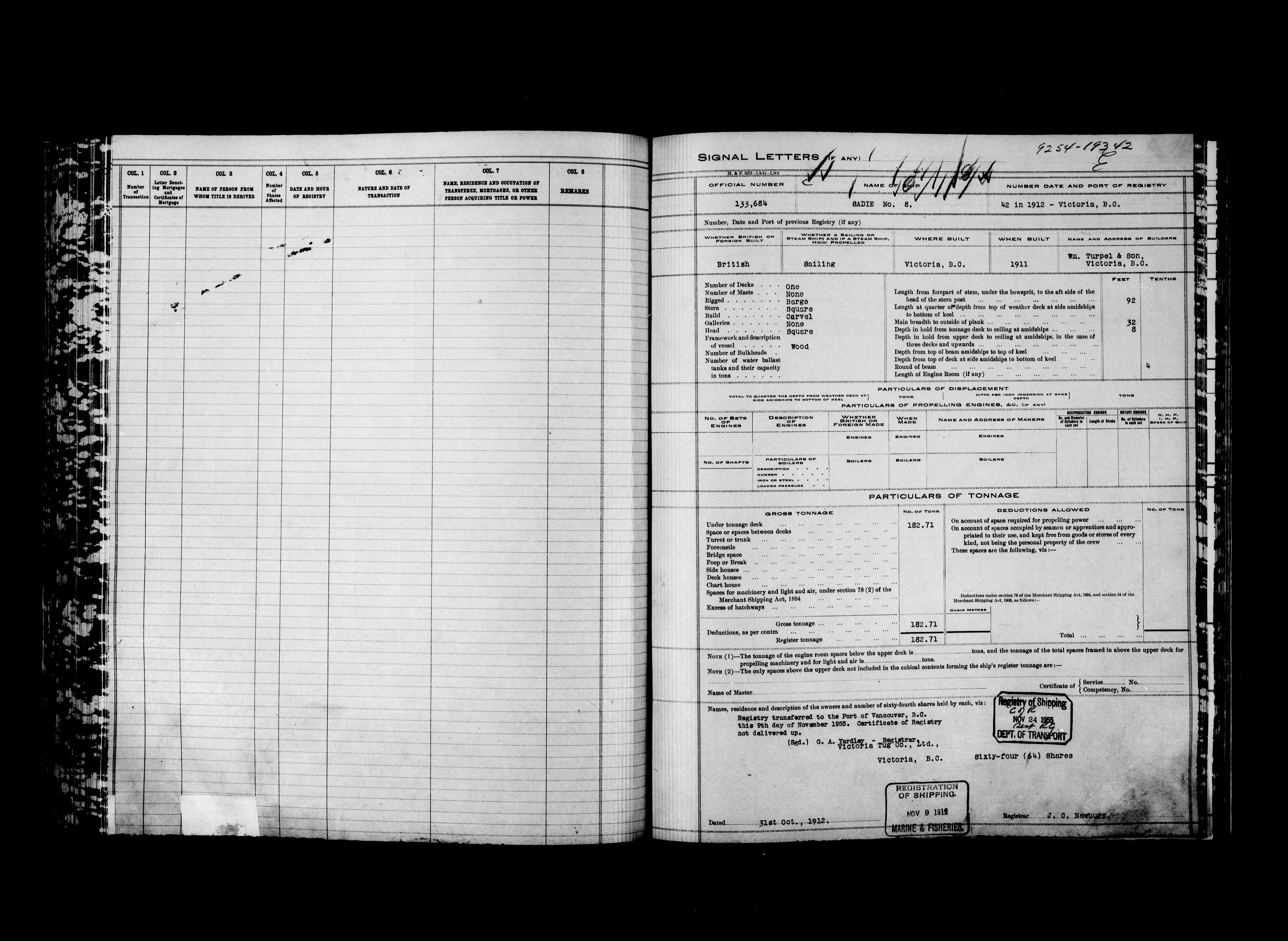 Department of Transport : Registers and ledgers cards of ships closed-out : T-11913