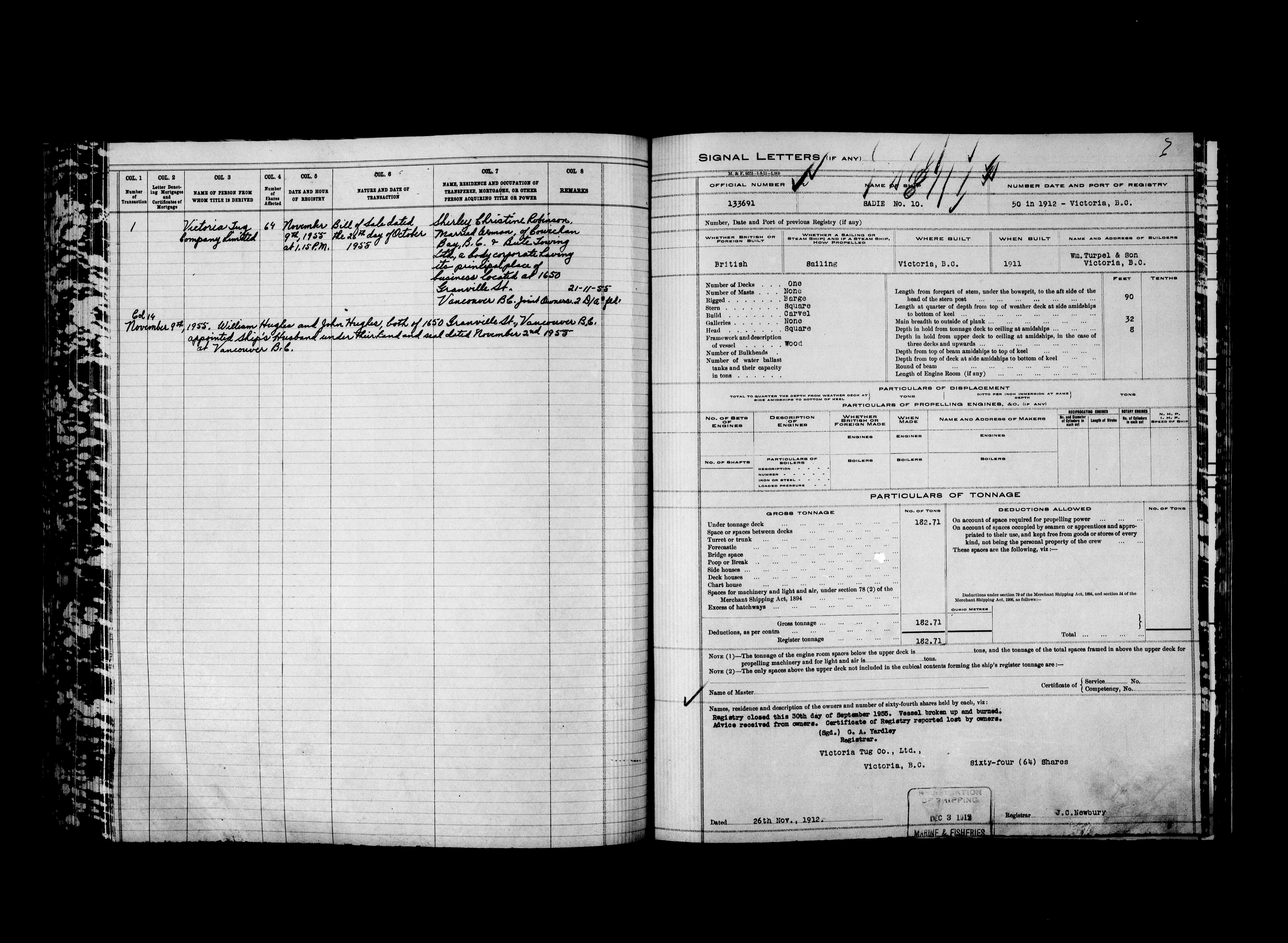 Department of Transport : Registers and ledgers cards of ships closed-out : T-11913