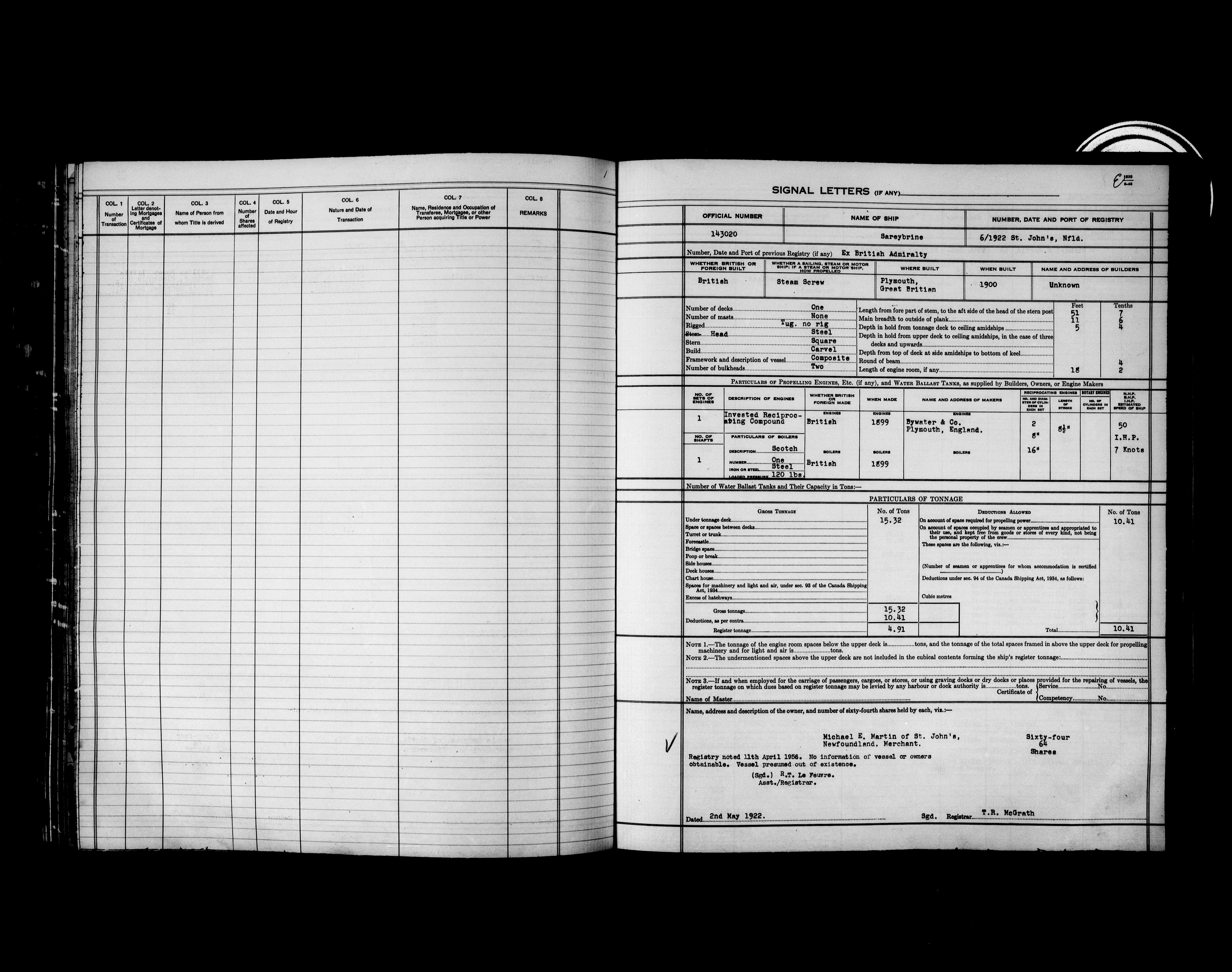 Department of Transport : Registers and ledgers cards of ships closed-out (1904-1983) - 11914